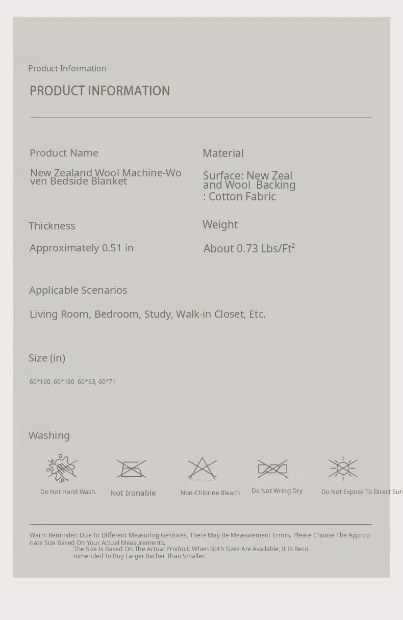 Premium New Zealand Imported Wool Bedside Blanket - Elegant Living Room and Bedroom Carpet for Sofa, Coffee Table, Embracing Wabi-Sabi Aesthetics