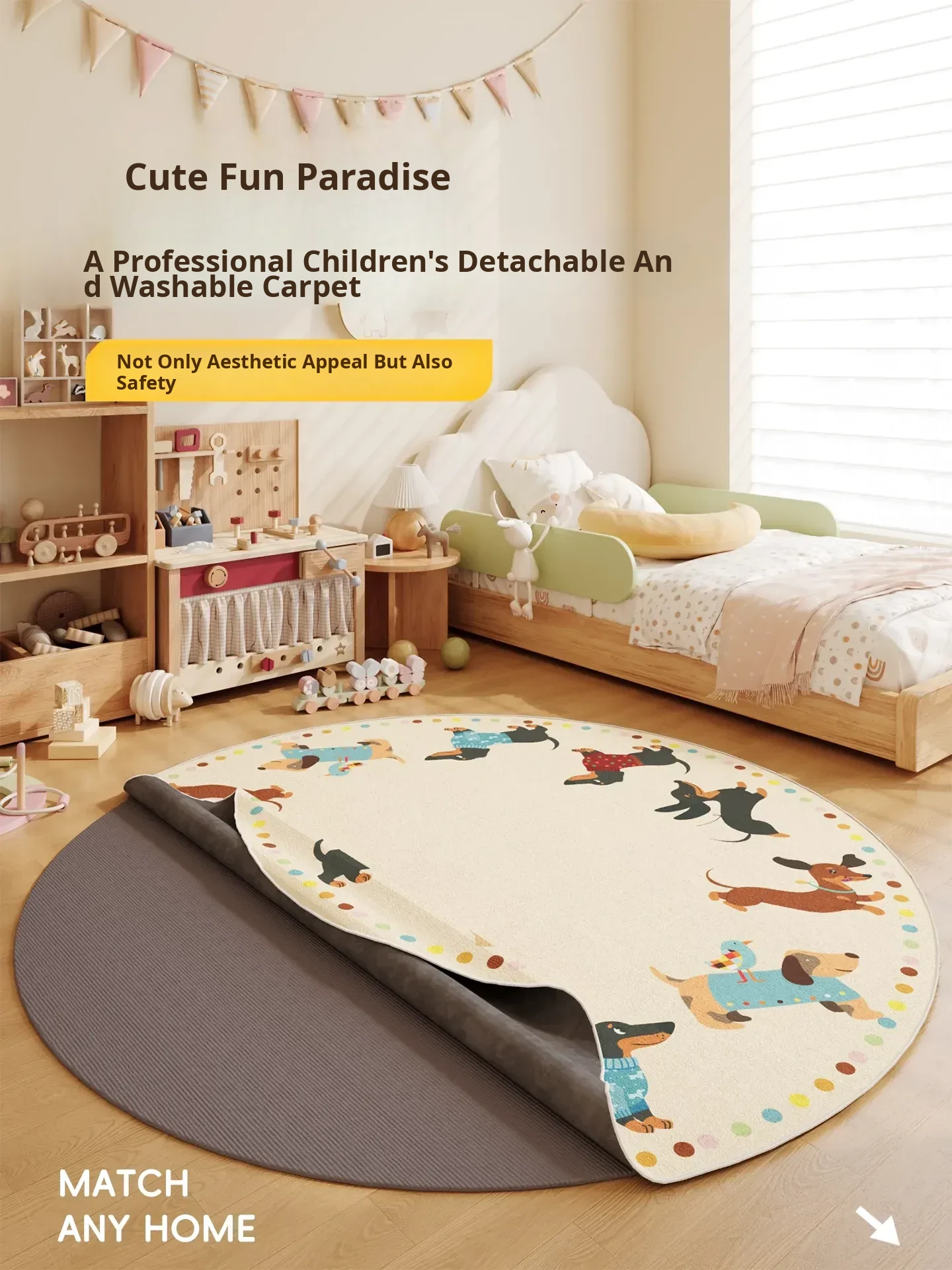 Kids' Round Detachable Washable Rug - Cartoon Dog Double-layer Play Mat, Machine Washable & Non-slip Baby Crawling Mat for Playroom
