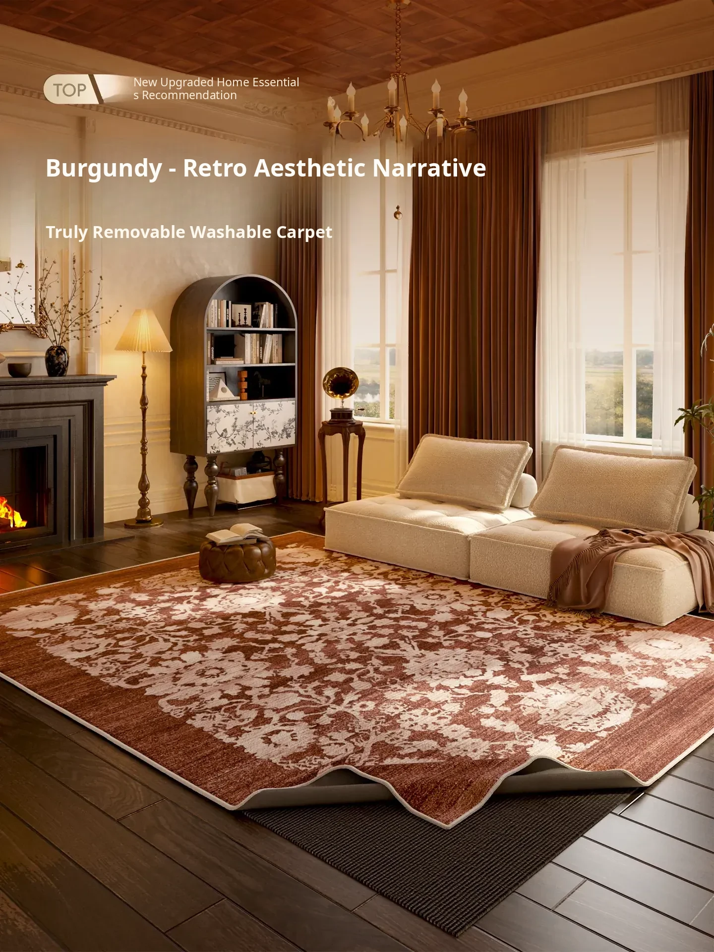 2025 New American Vintage Removable and Washable Area Rug - Luxurious Double-Layer Carpet for Living Room and Bedroom, Easy to Clean and Stylish