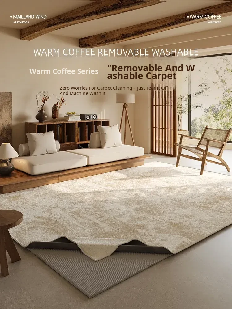 Luxury Removable Washable Carpet for Living Room and Bedroom - Stylish Double-Layer Soundproof Melard Area Rug, Machine Washable, Perfect for Bedside Use