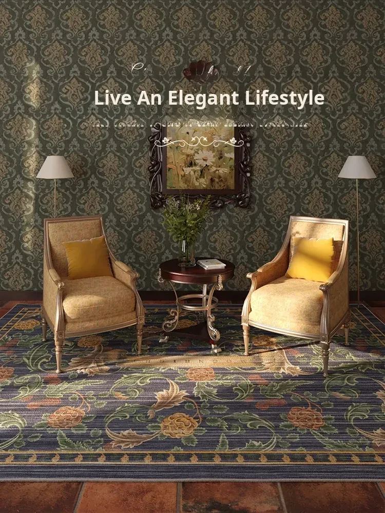 Stylish Minimalist American Living Room Carpet - Luxury Vintage Coffee Table Rug, Easy-Clean and Washable Bedside Mat for 2025 New Collection
