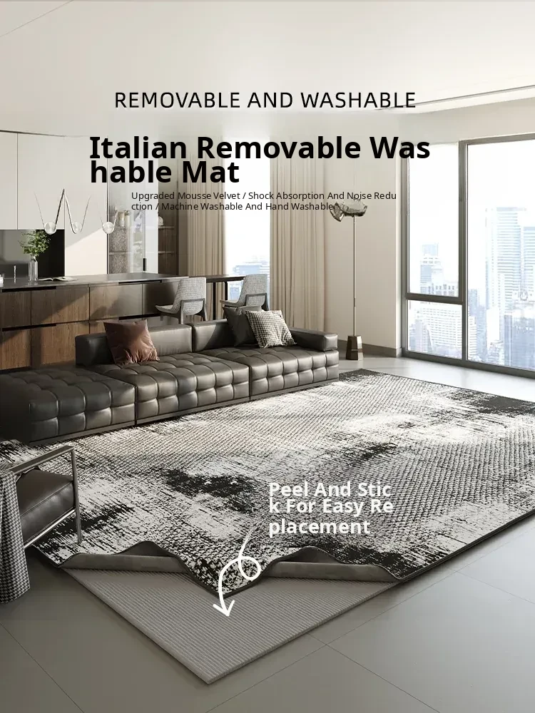 Modern Italian Removable Washable Carpet - Luxurious Feel for Living Room, Sofa, and Coffee Table; New Machine-Washable Bedside Rug for Bedroom