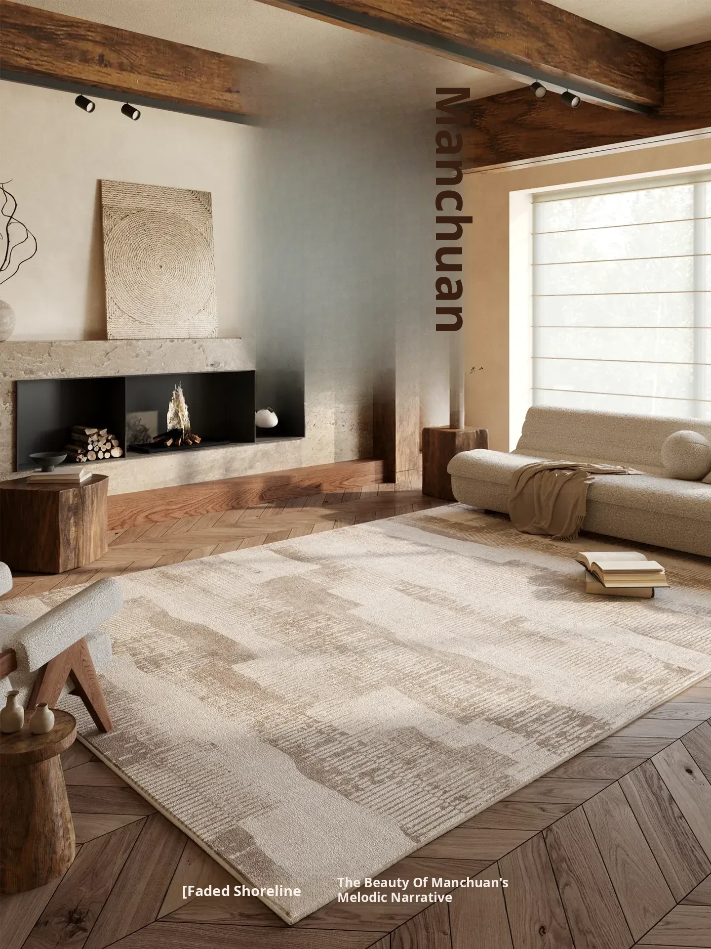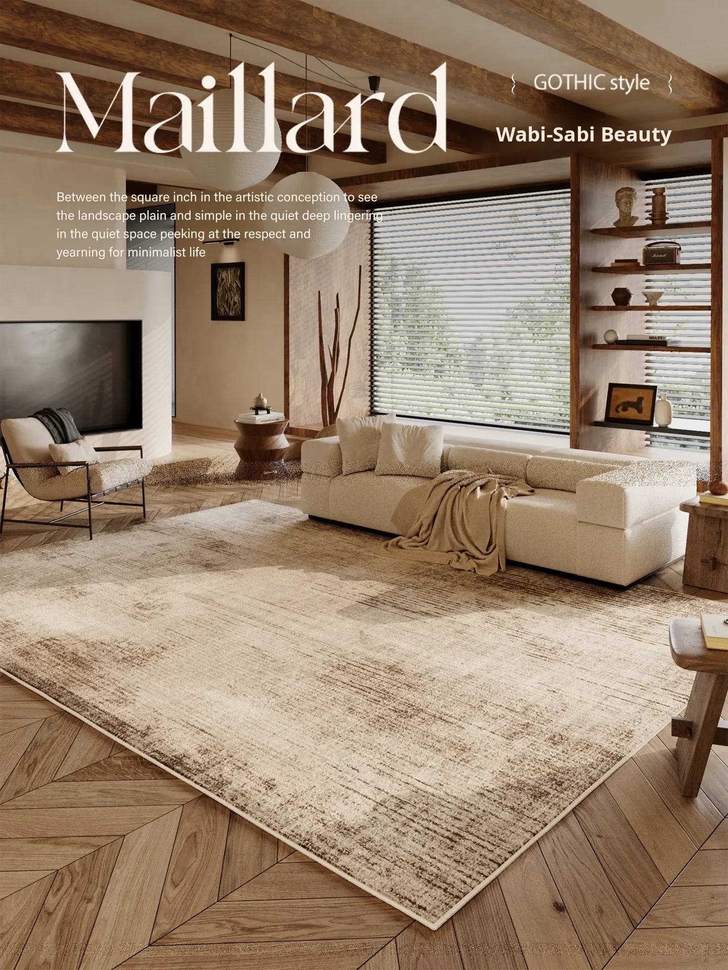 2025 New Vintage Wabi-Sabi Style Living Room Carpet - High-End, Washable, and Easy-Clean Bedside Mat for Sofa and Coffee Table