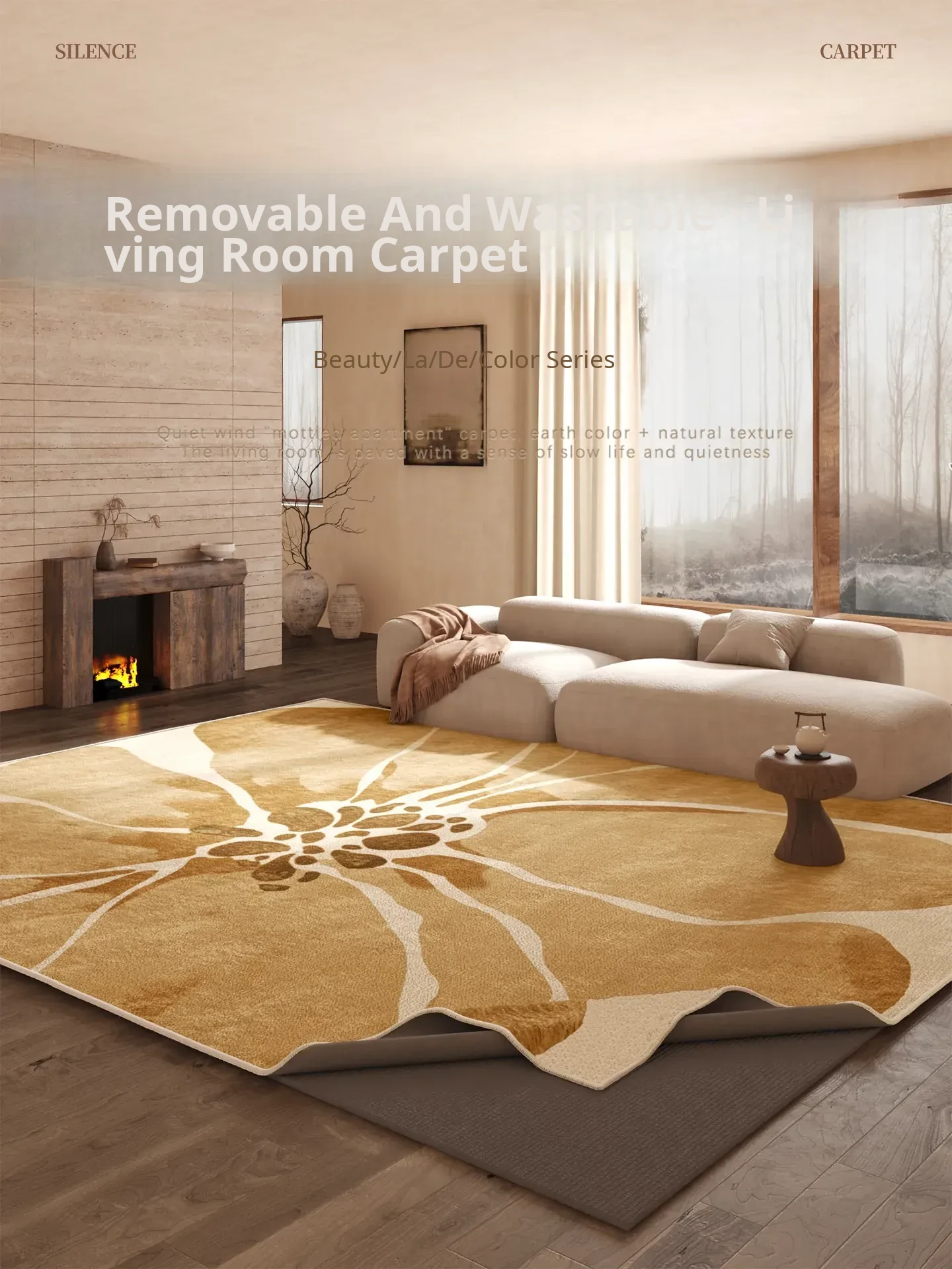 2025 New Vintage Wabi-Sabi Style Living Room Carpet - Washable and Easy to Clean Bedside Mat for Sofa and Coffee Table, Perfect for Home Use in Bedroom and Living Areas