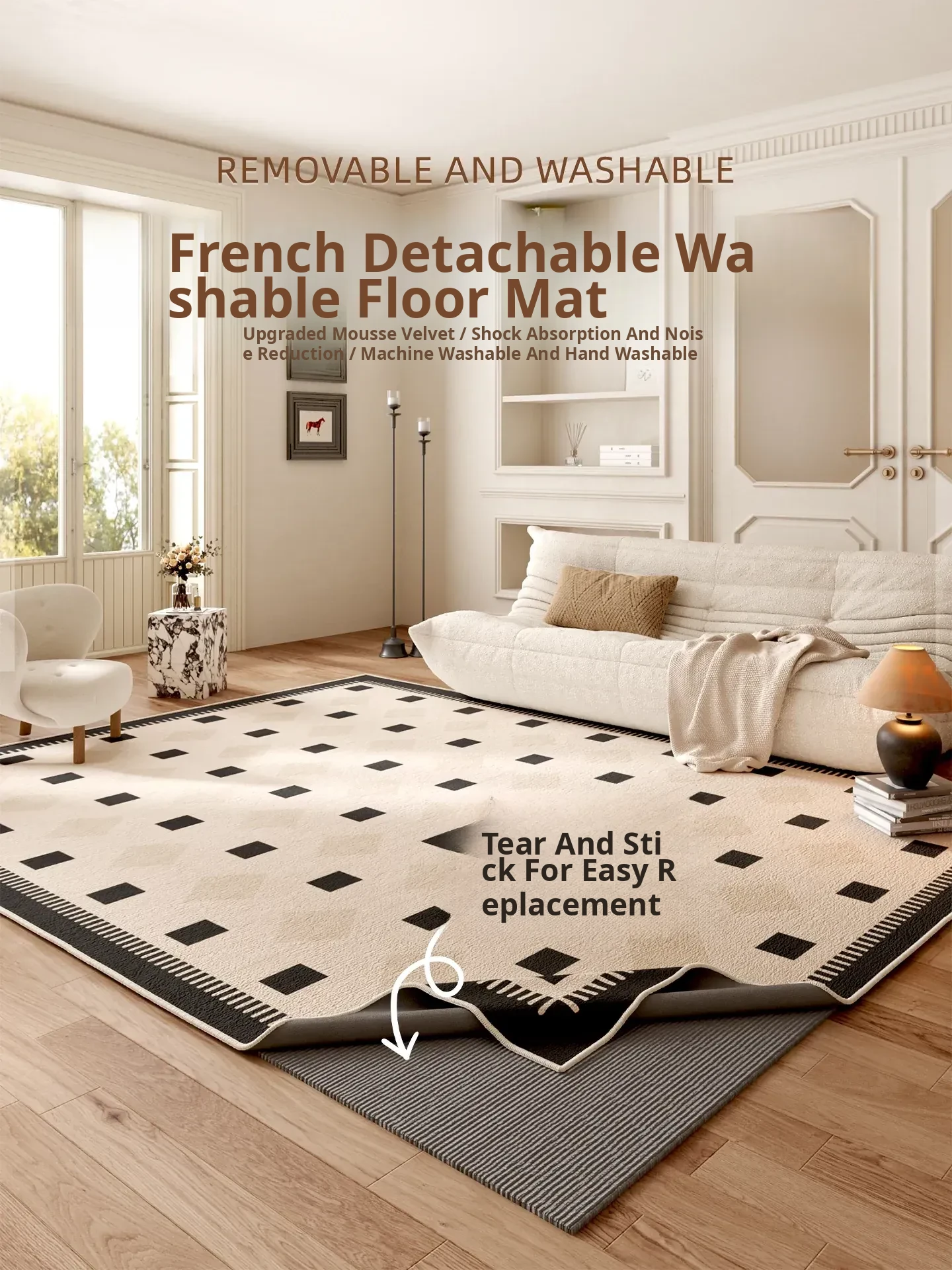 2025 New French Cream Style Washable Area Rug for Living Room – Detachable and Machine Washable Carpet for Sofa and Coffee Table, Perfect for Bedroom or Bedside