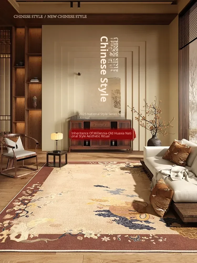 2025 New Elegant Chinese Style Area Rug for Living Room and Bedroom - Easy to Clean, Luxurious Feel, Perfect for Tea Rooms and Modern Decor