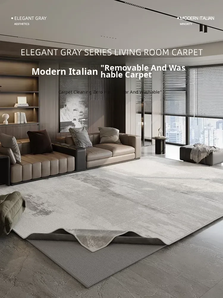 Italian Minimalist Removable Washable Rug - 2025 New Collection, Luxurious Gray Carpet for Living Room and Bedroom, Machine Washable Bedside Mat