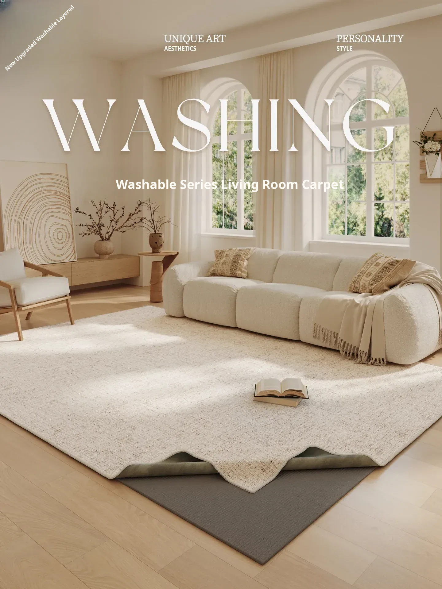 Minimalist Area Rug for Living Room - 2025 New Stylish Design, Luxury Washable and Wipeable Carpet for Sofa and Coffee Table, Perfect for Bedroom or Bedside Use
