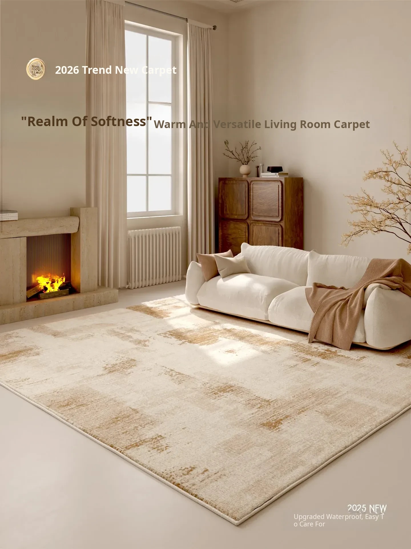Modern Minimalist Area Rug for Living Room - 2025 New Design Bedroom Carpet, Bedside Mat, Luxurious Feel, Easy Care, Waterproof and Stain-Resistant.