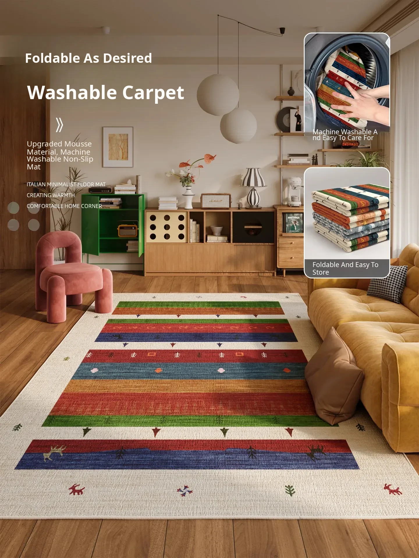 2025 New Wabi-Sabi Style Living Room Carpet - Waterproof and Easy-to-Clean Sofa and Coffee Table Mat, Ideal for Home Use, Perfect for Bedroom or Bedside!