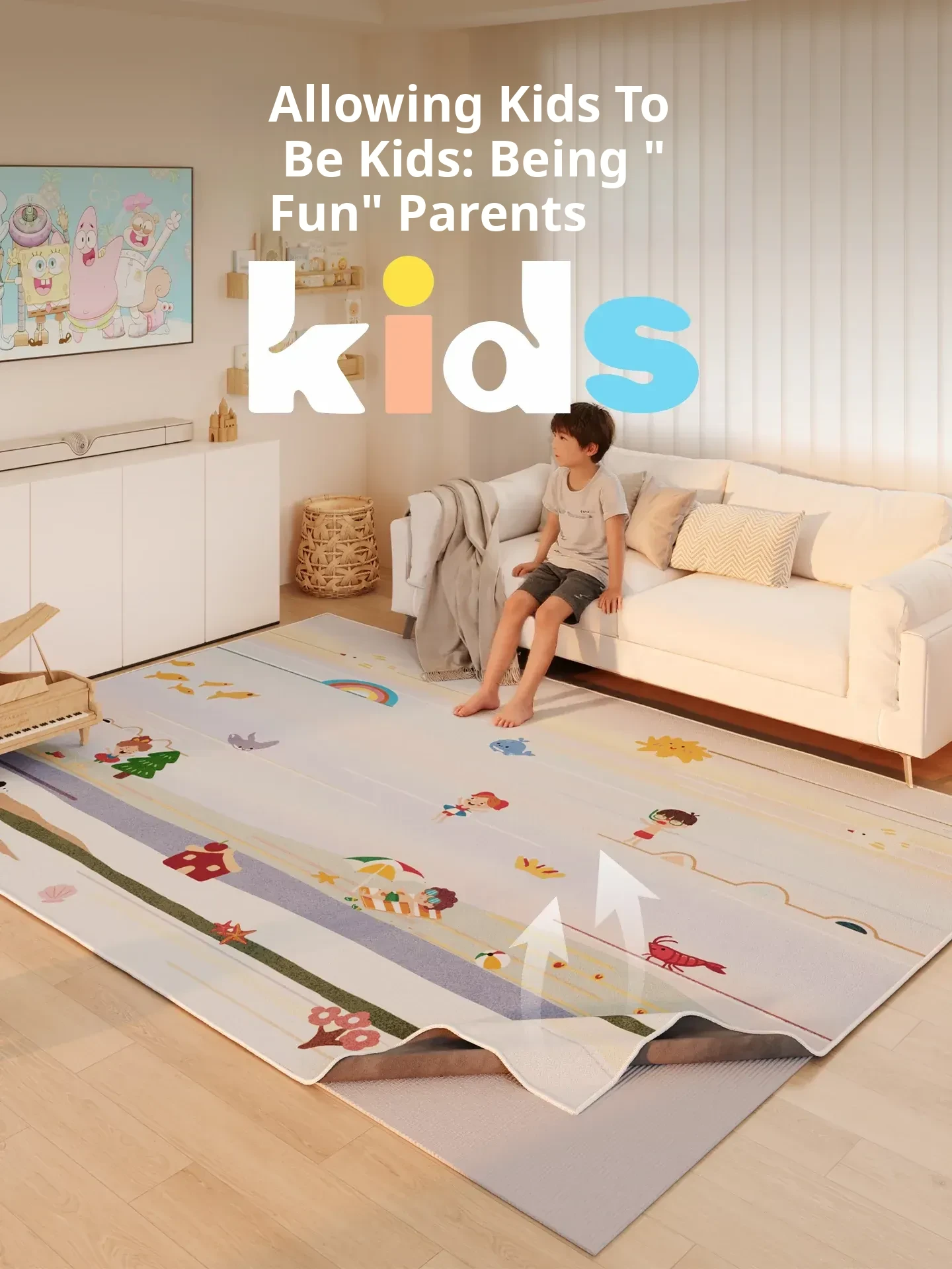 Washable Cartoon Dog Double Layer Play Mat for Kids - Removable and Easy to Clean Area Rug for Living Room and Children's Room, Perfect for Baby Crawling and Playtime