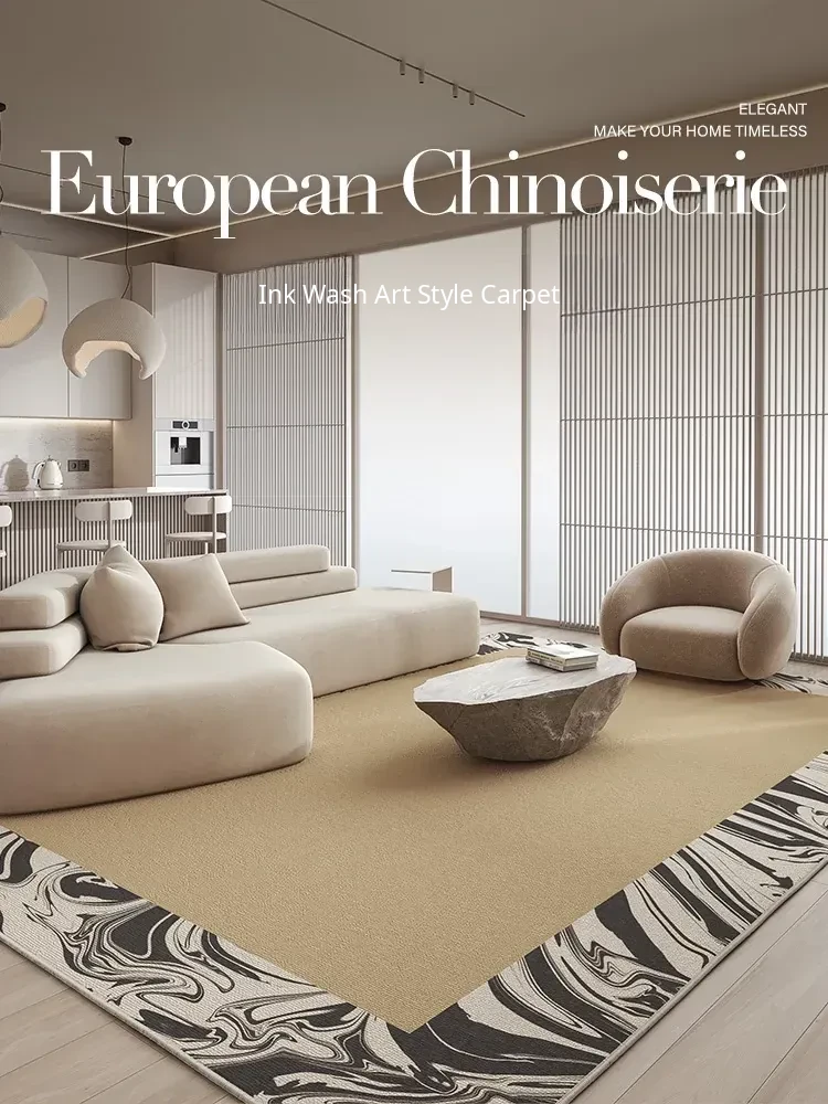 French Vintage Living Room Carpet - Modern Minimalist Ink Wash Style Bedroom Area Rug, Luxurious European Design for a Chic Touch