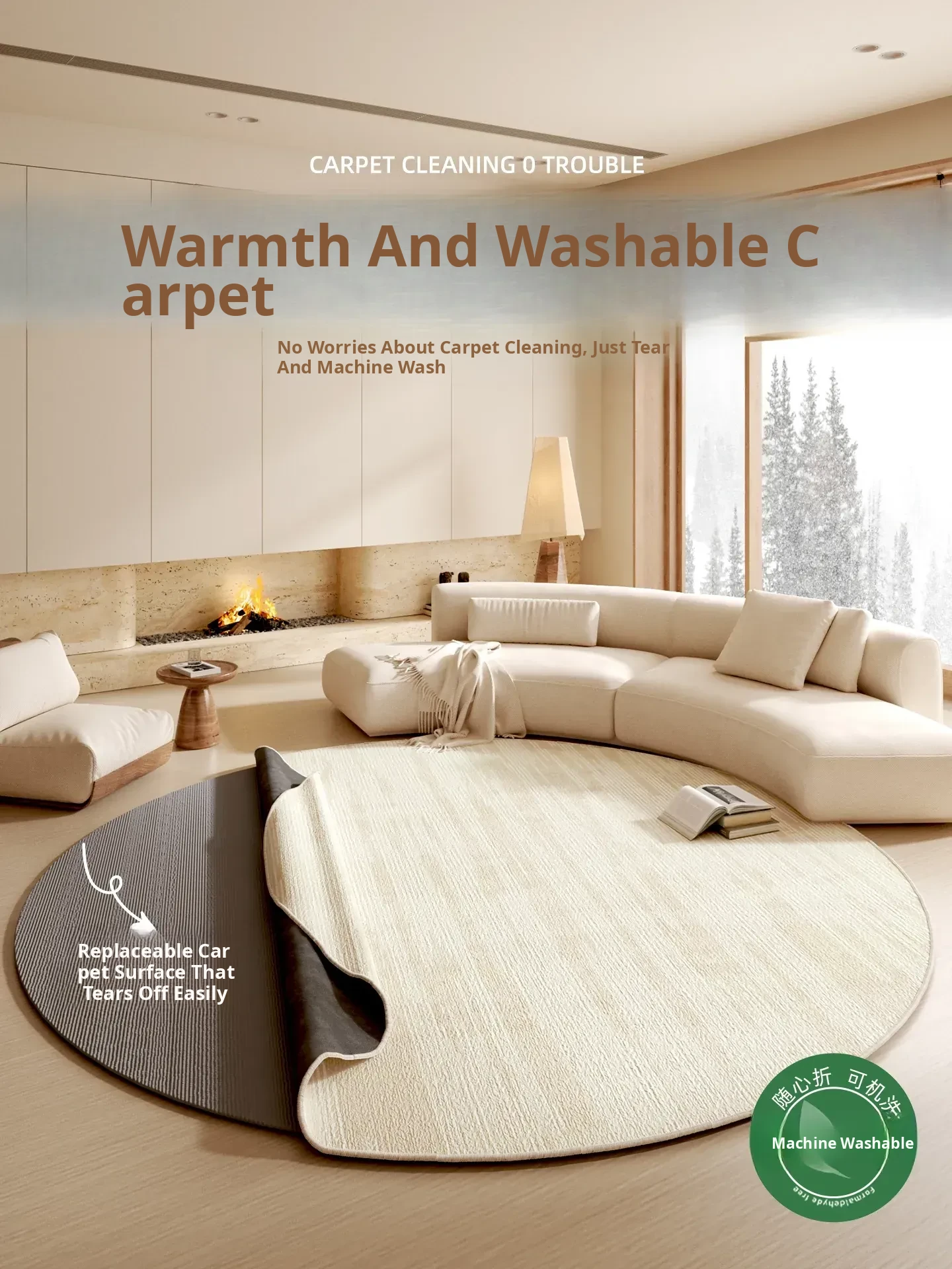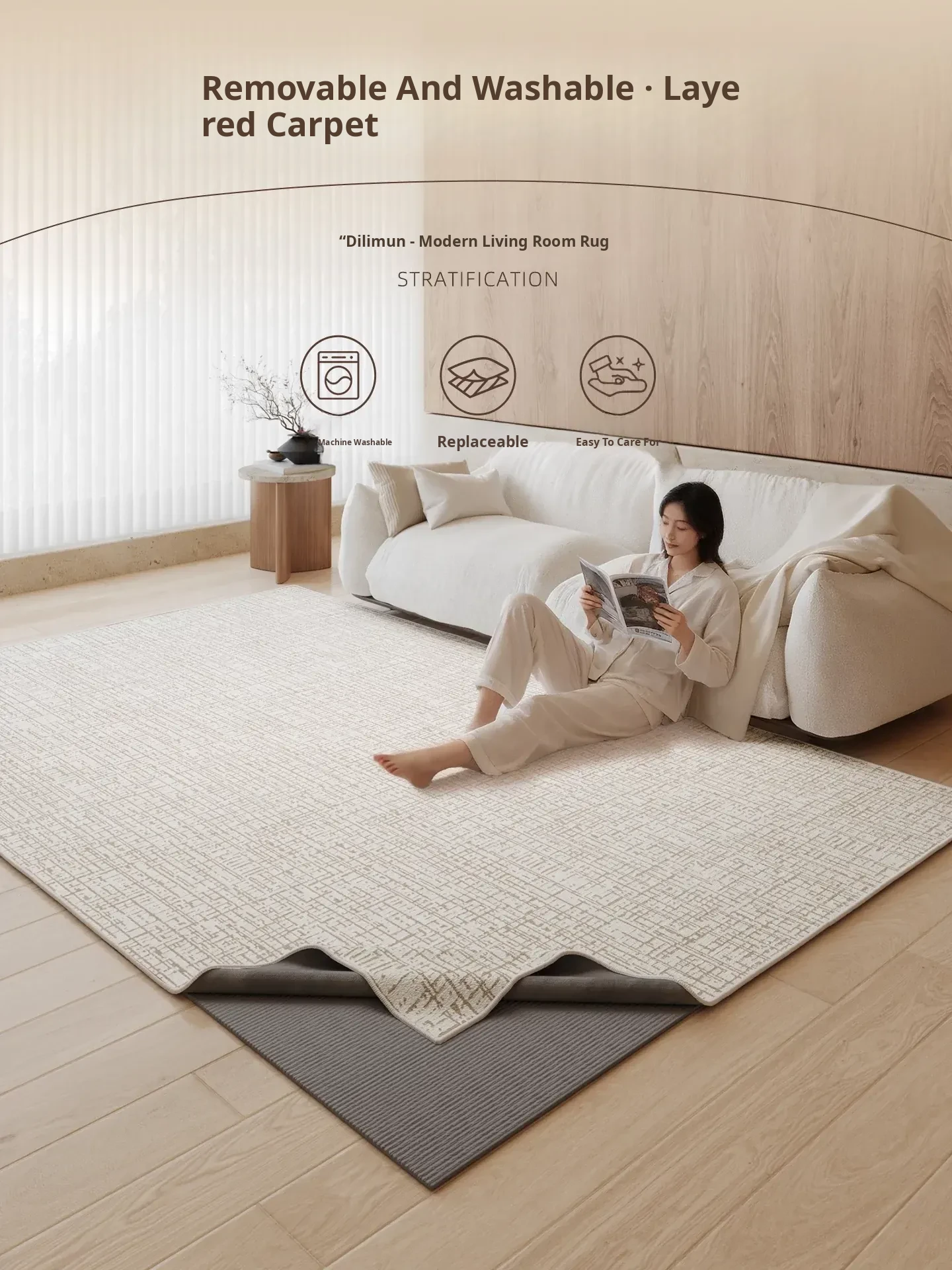 Luxury Removable and Washable Carpet for Living Room - Double-layer Detachable Area Rug for Bedroom and Bedside, Machine Washable for Easy Maintenance, Elevate Your Home Décor with Style!