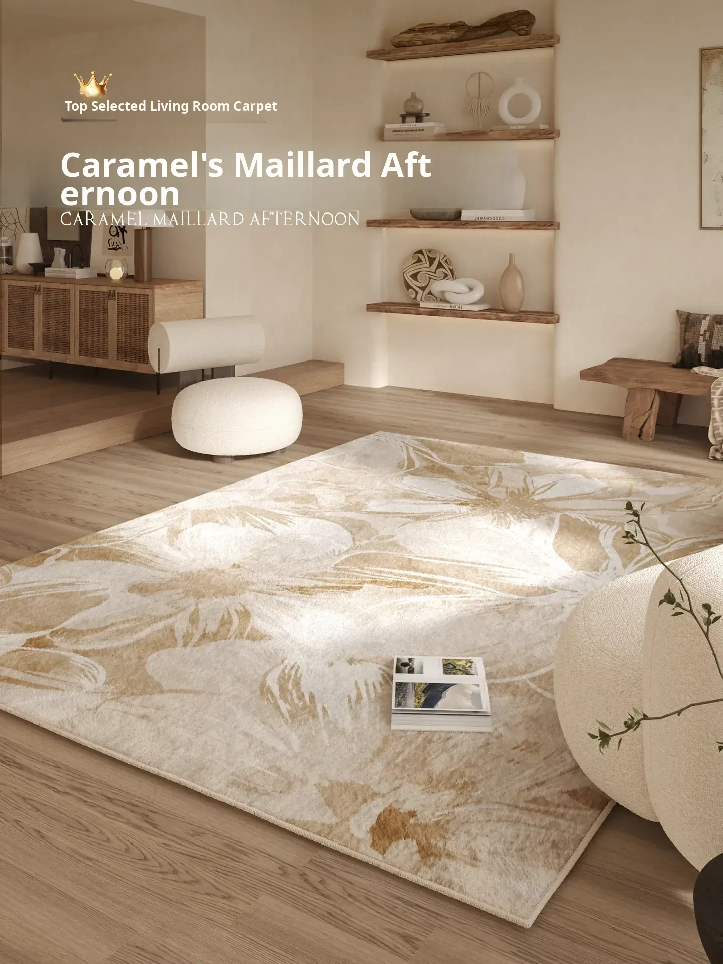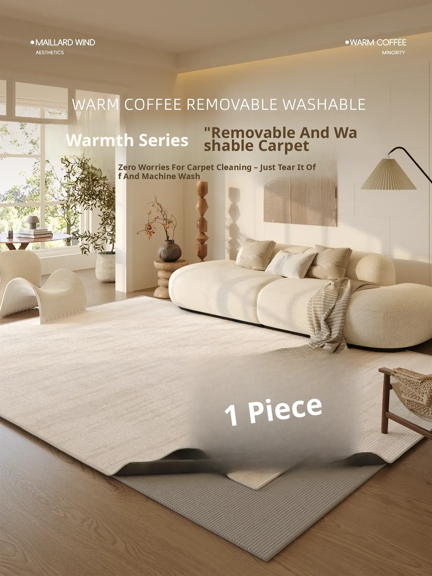 Machine Washable and Removable French Cream Sofa and Coffee Table Area Rug - Versatile Bedroom Bedside Carpet for Easy Maintenance and Stylish Decor.