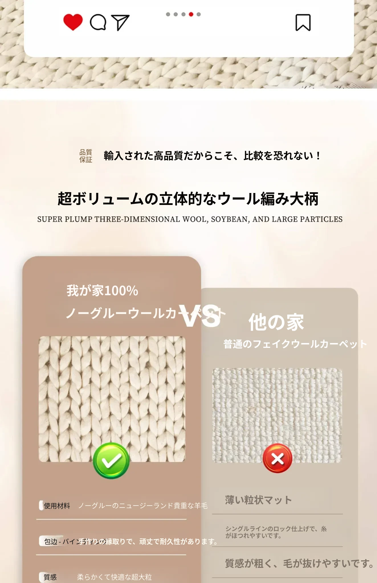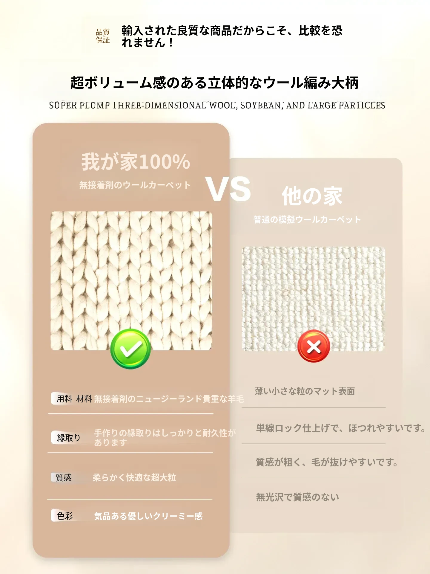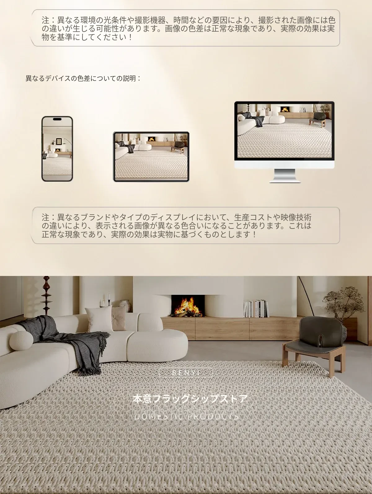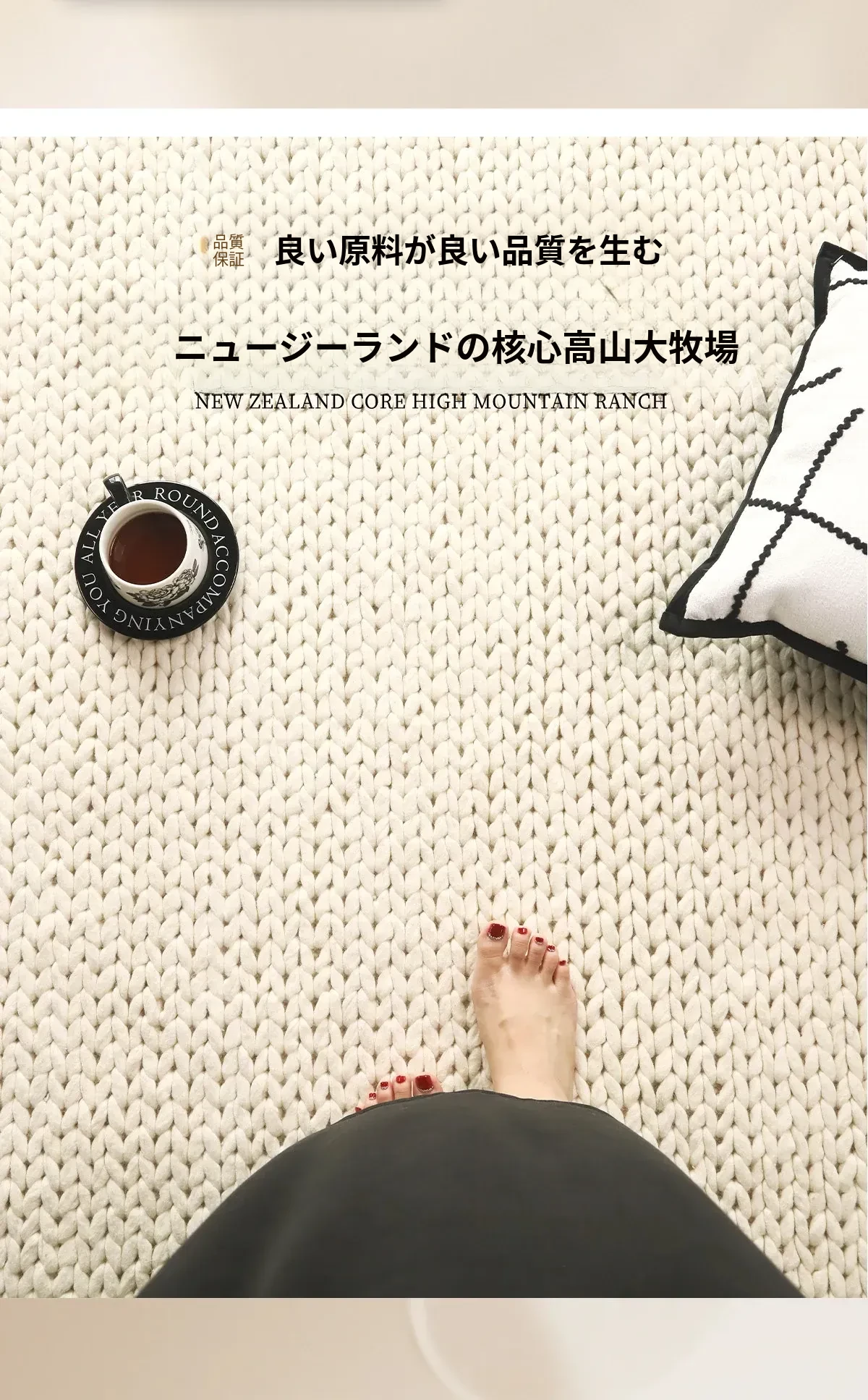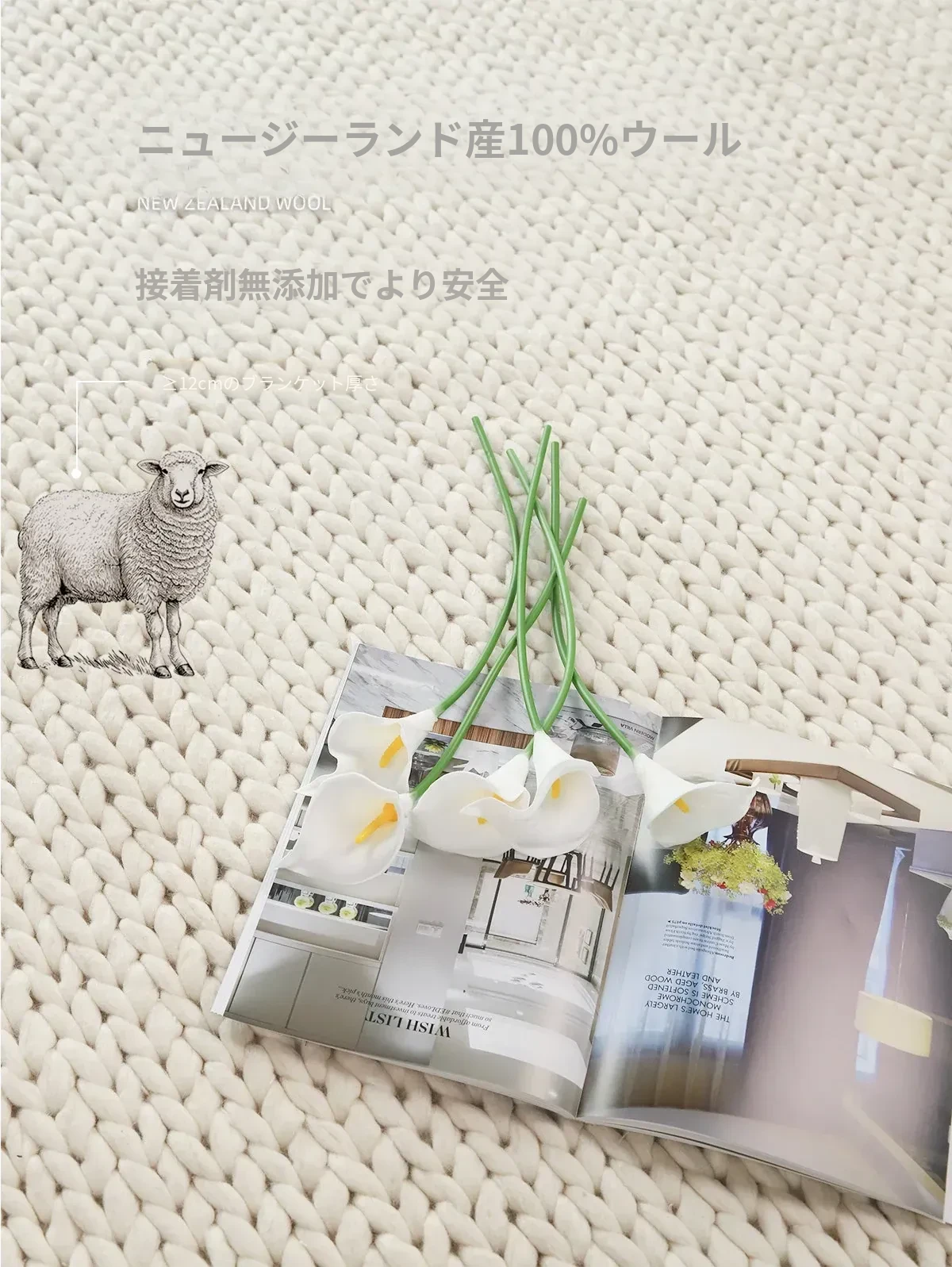 ノーグルーリビングラグ ニュージーランド直輸入の純ウールラグ 手作りのリビングソファ用 ベッドルームやコーヒーテーブルにも最適な高品質カーペット