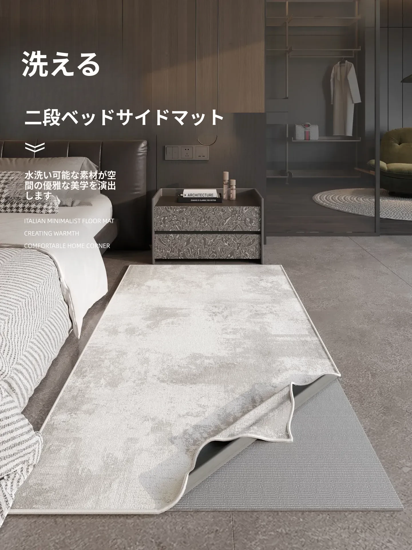 洗えるカーペット 2025年新作 リビング・ベッドサイド用 高級感あふれるシンプルモダンデザイン おしゃれで快適な空間を演出するベッドサイドマット