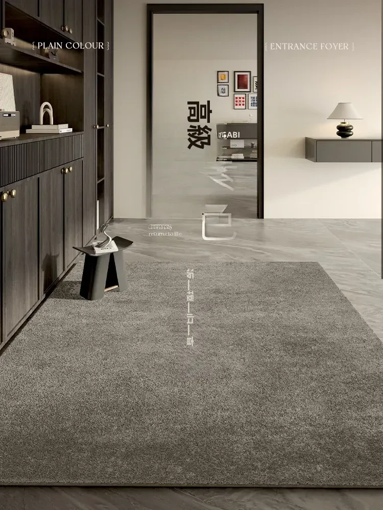 北欧スタイルのリビングルーム用ラグ - シンプルな無地デザイン、高級感あふれるグレー色で、ソファやテーブルの下にぴったり。寝室のベッドサイドにも最適な、上質な家庭用カーペットです。
