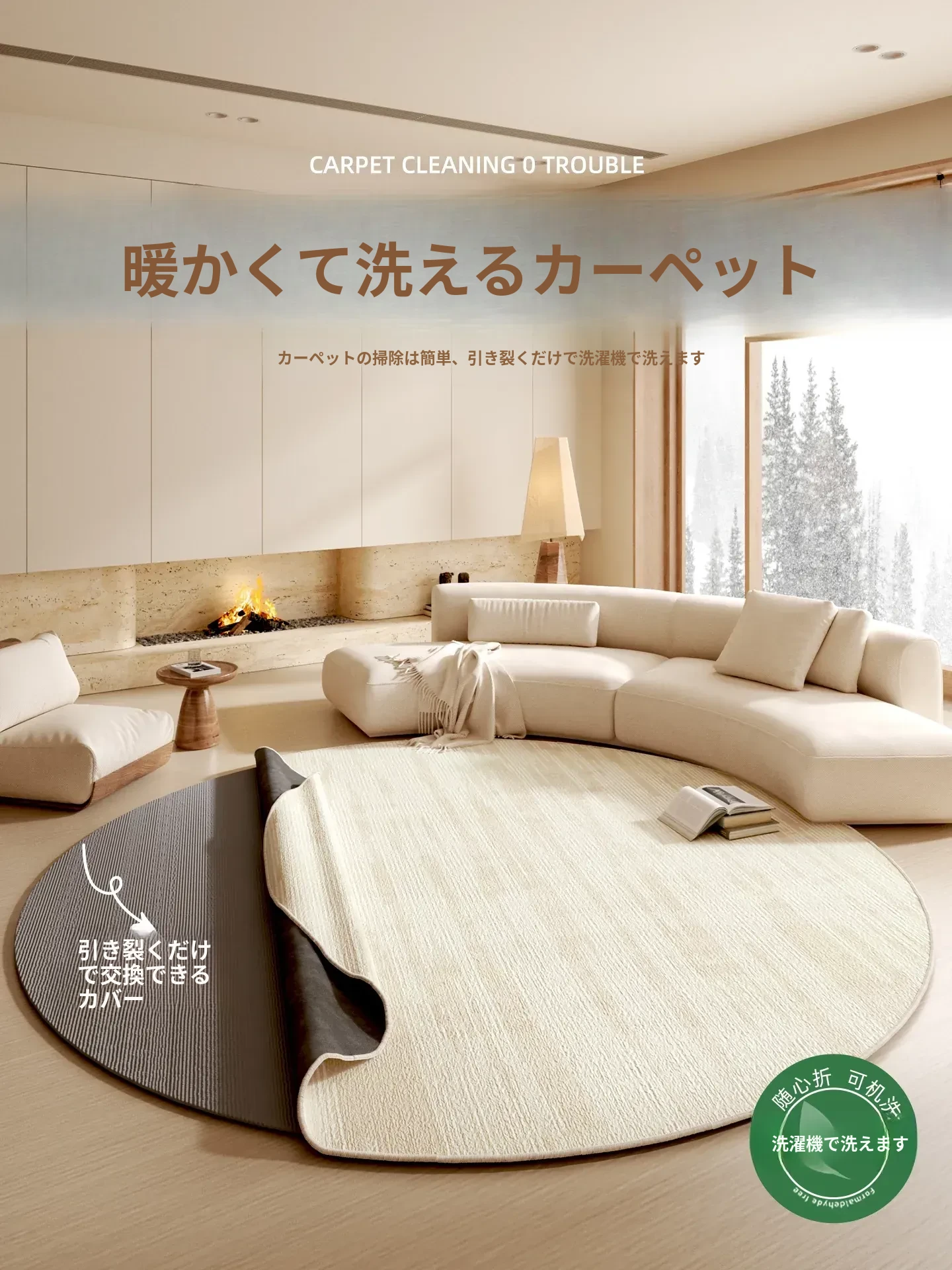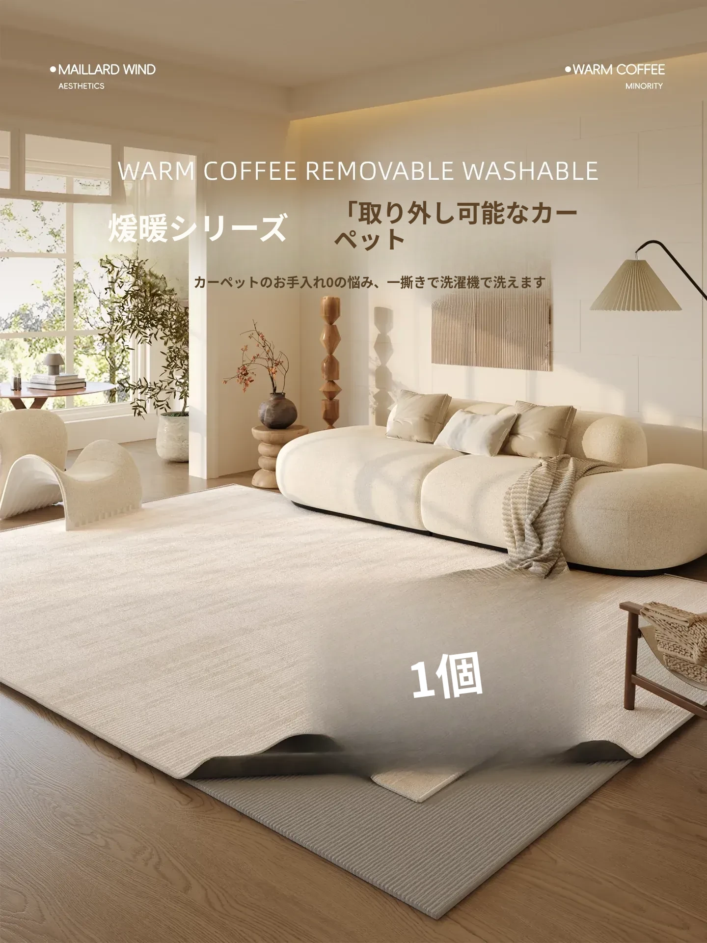 洗濯機で洗える!フレンチクリーム風のリビング用カーペット - ソファやテーブルの下にぴったり!ベッドサイドにも最適で、取り外し可能だからお手入れ簡単!おしゃれで便利なライフスタイルをお楽しみください。