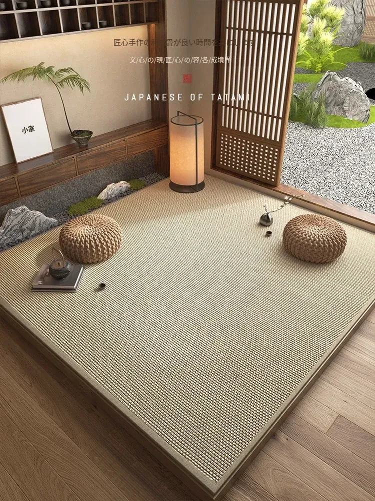 自然の木の風合いが魅力的なリビングルーム用ラグ、藤と竹で編まれた和室用マット。寝室の窓辺にもぴったり!厚手の畳マットで、茶室や涼しい季節に最適な快適な足元を実現します。
