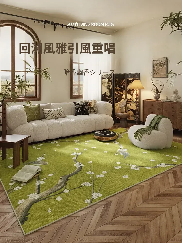 新中式デザインのリビングルームカーペット、ベッドサイド用国風スタイル、2025年新作!お手入れ簡単で、優雅な軽やかさを演出する茶室用カーペット。高級感溢れる空間を実現!