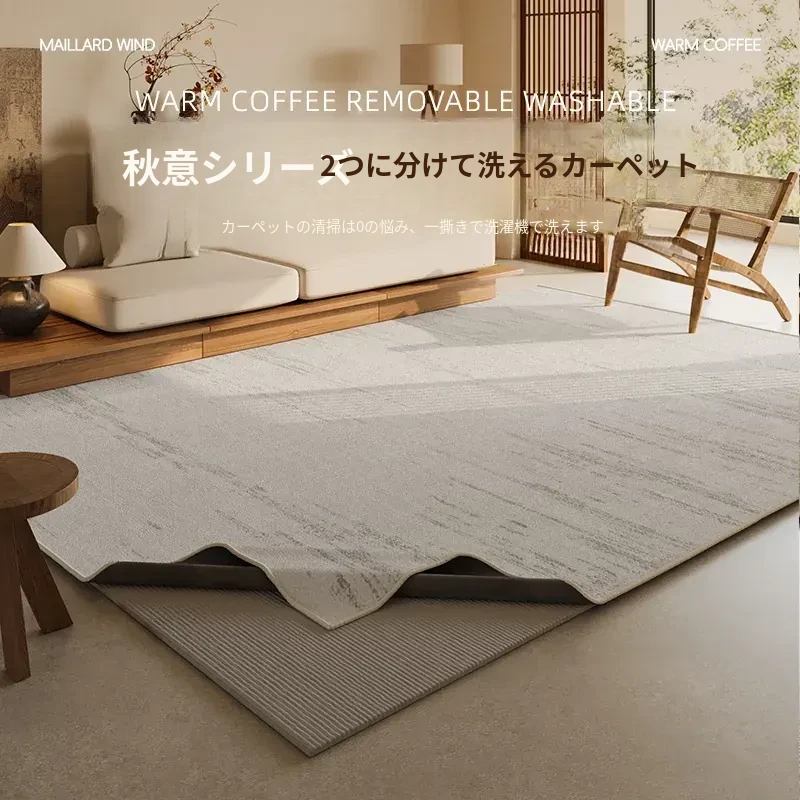新作 2025年 ダブルレイヤー メイラードカーペット リビングルーム用 洗える 軽やかな高級感 ベッドサイドマット 便利な機械洗い対応