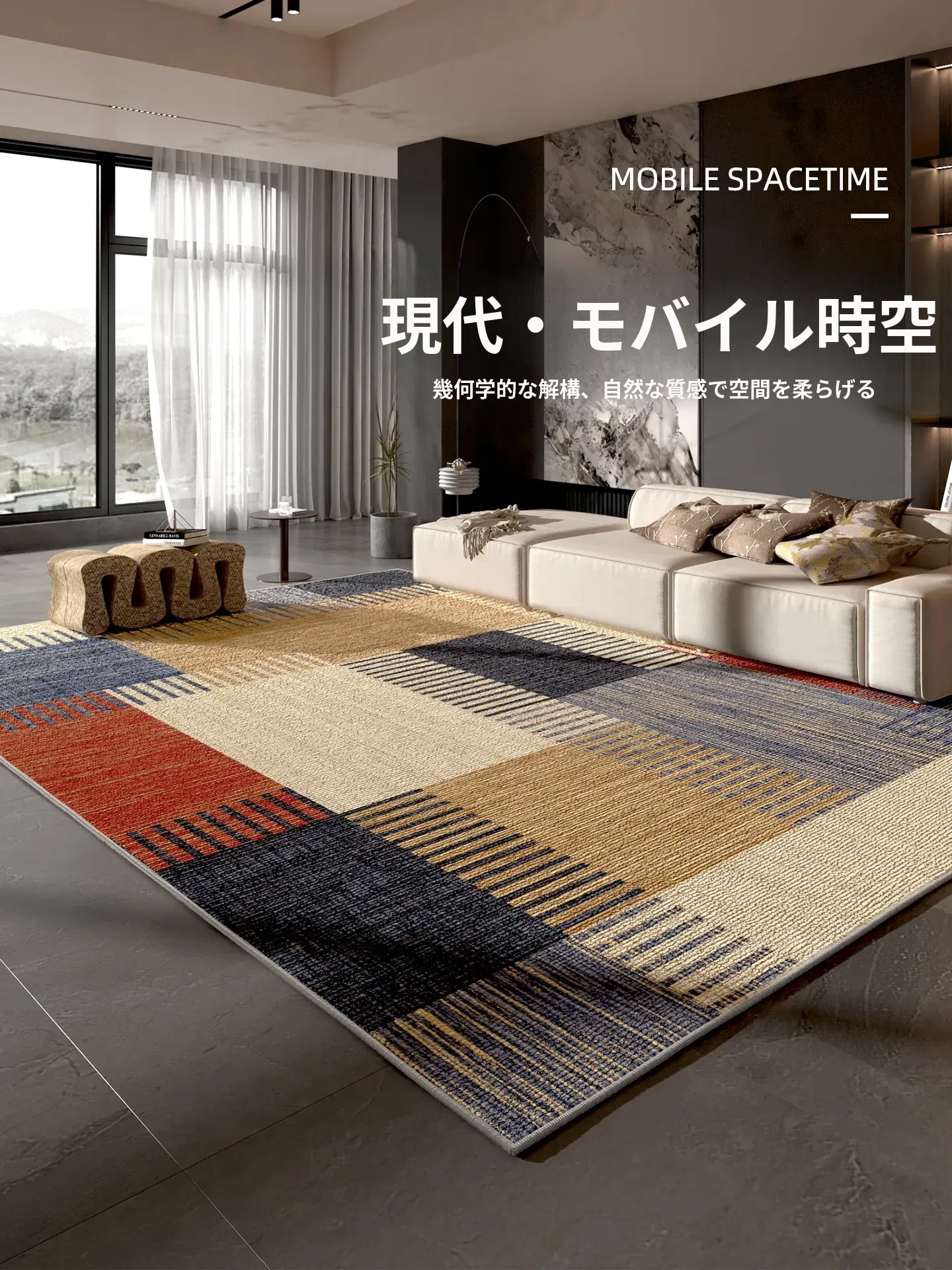 北欧風リビング用ソファマット、掃除不要・拭き取り可能な現代的シンプルデザインの高級ラグ、贅沢な家用カーペットでお部屋をおしゃれに演出!