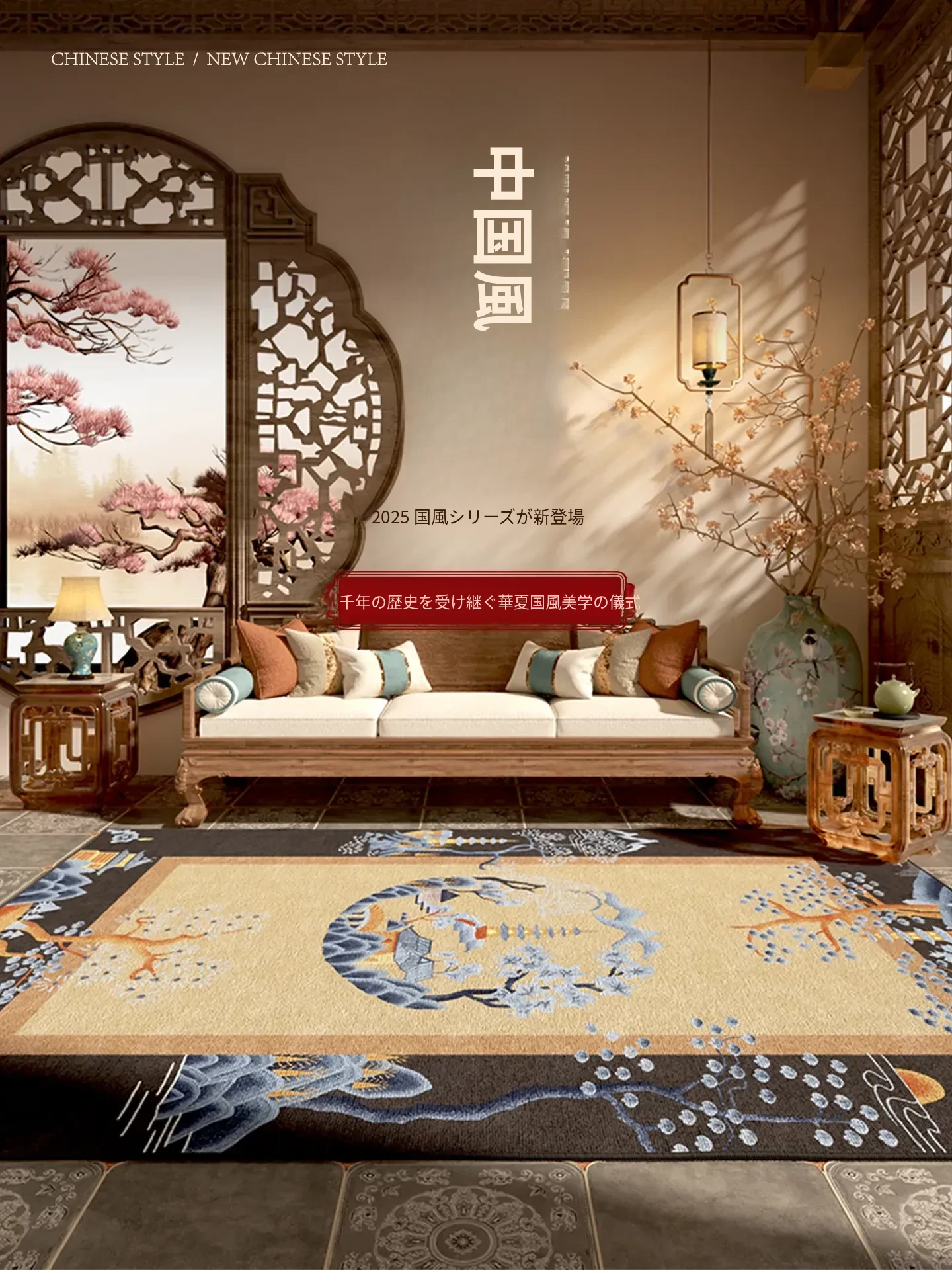 中式風格リビングカーペット|国風デザインの寝室用ベッドサイドマット|洗濯不要でお手入れ簡単|ソファやテーブルにもぴったり|軽やかさと高級感を兼ね備えた一品!