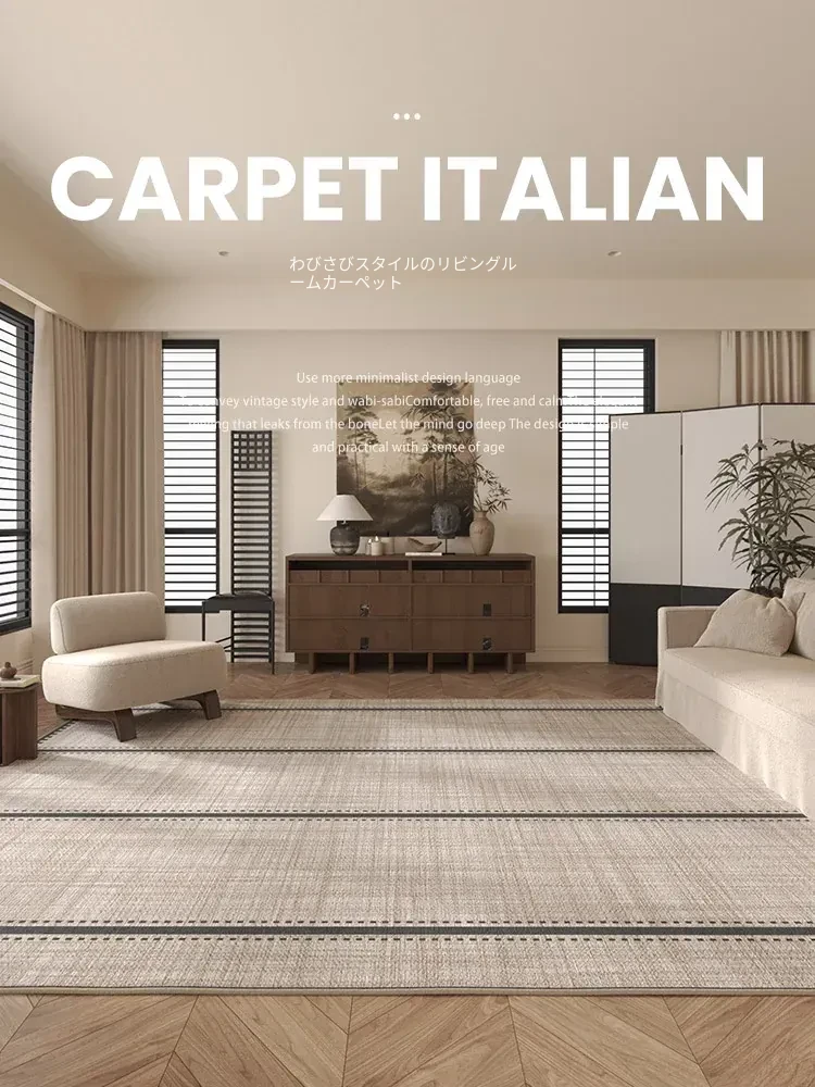イタリアンミニマルデザインのリビングカーペット|ソファやテーブルにぴったりの現代的で上質な印象を与える新作2025年モデル。あなたのリビングをスタイリッシュに演出します!
