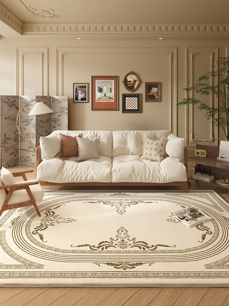 2025年新作!レトロデザインのリビングカーペット - お手入れ簡単なソファ&テーブル用マット。洗濯不要で、無垢フローリングにもぴったり!ベッドサイドにもおすすめのスタイリッシュなアイテムです。
