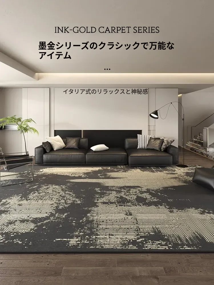 2025年新作!軽奢華の防水リビングカーペット - イタリアンモダンデザインの洗えるソファテーブルマット。お手入れ簡単でスタイリッシュな空間を演出!