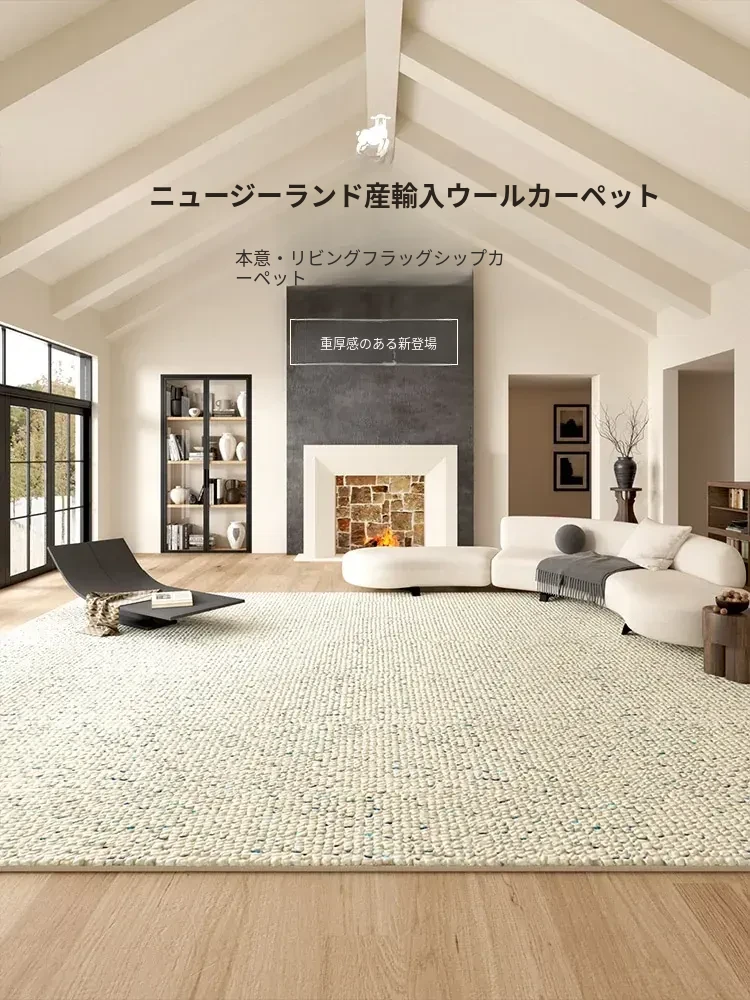 イタリアンミニマルウールカーペット|リビングに最適なナチュラルカラー|印刷なしでお手入れ簡単|高級感溢れるラグジュアリーな別荘スタイルのカーペット