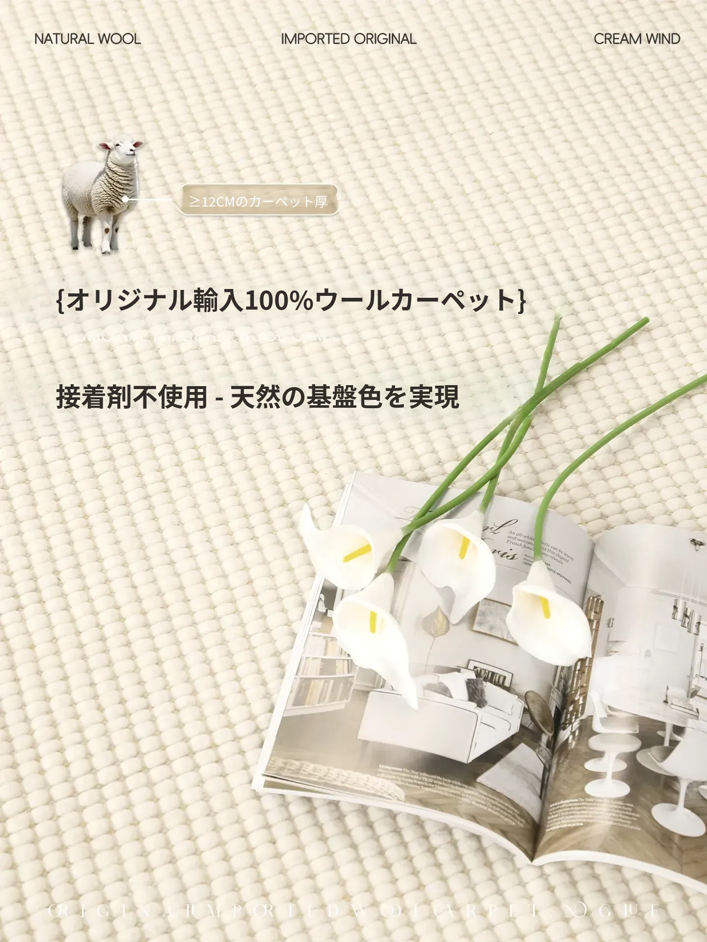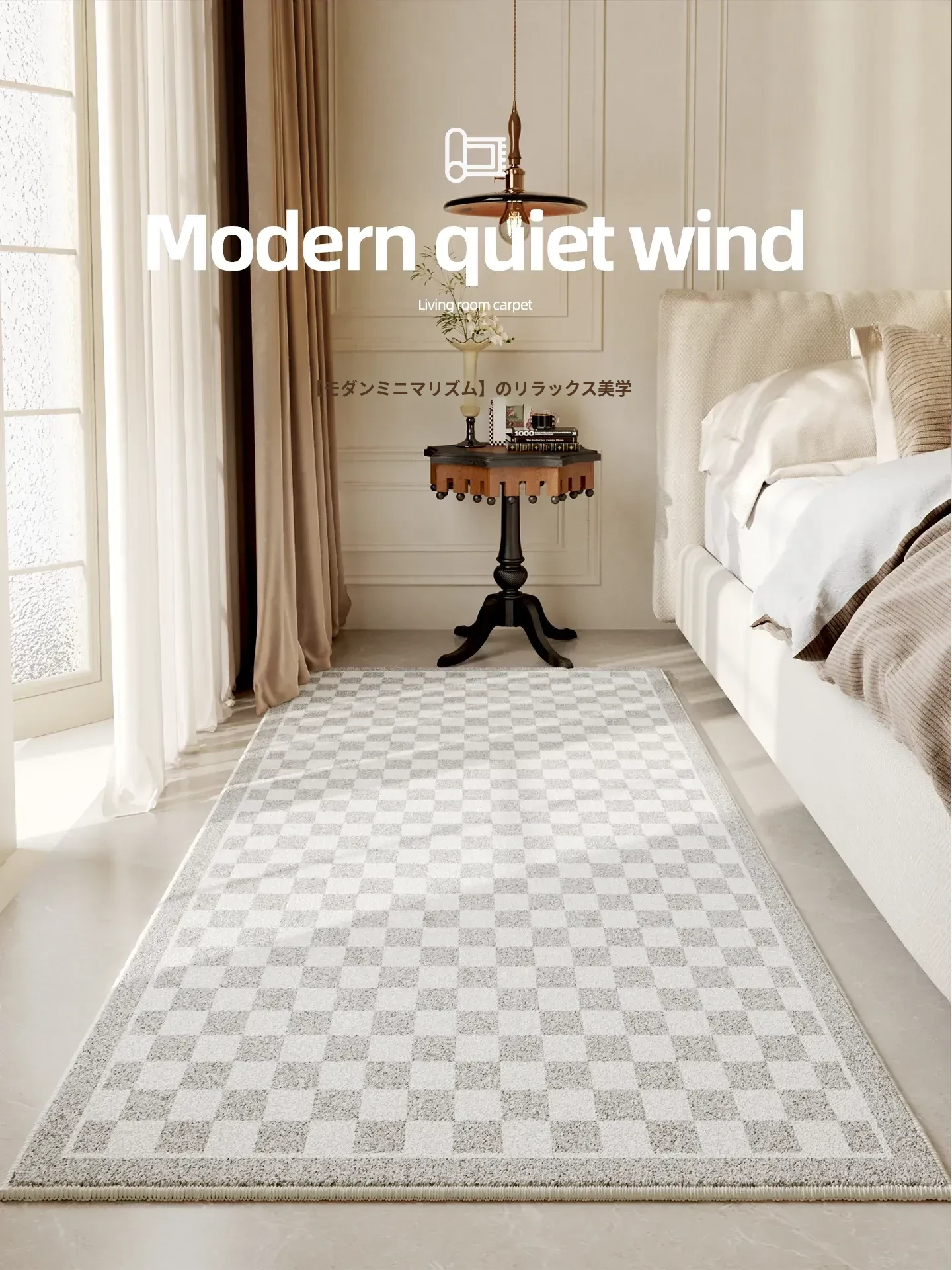 イタリアンミニマルデザインのカーペット2025新作!高級感漂う軽やかな寝室用ベッドサイドマット。リビングにぴったりの滑り止め・防音機能付きで、お手入れも簡単!