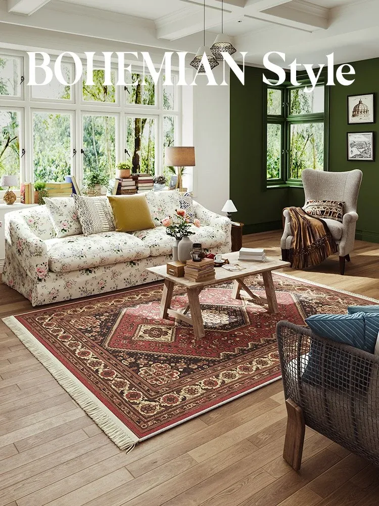 リビングルーム用古風デザインの高級感あふれるカーペット2025新作!ソファやテーブルにぴったり。お手入れ簡単、洗わずに拭くだけで清潔感を保てます。おしゃれで快適な空間を演出します!