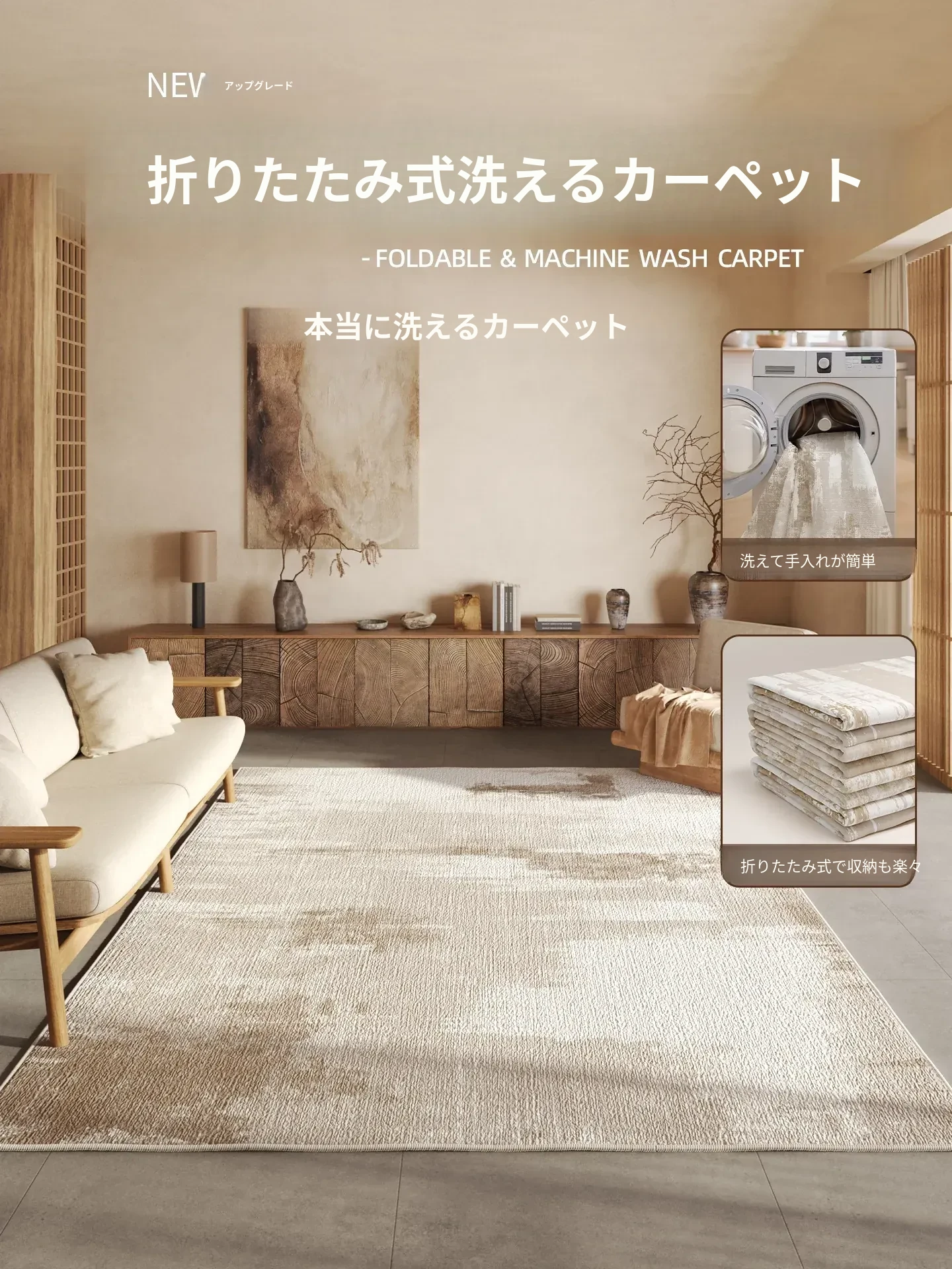 2025年新作!洗えるラグ - リビングやベッドサイドにぴったりの軽やかで高級感あふれるデザイン。シンプルでモダンなスタイルで、どんな空間にもマッチ!写真映えすること間違いなし!