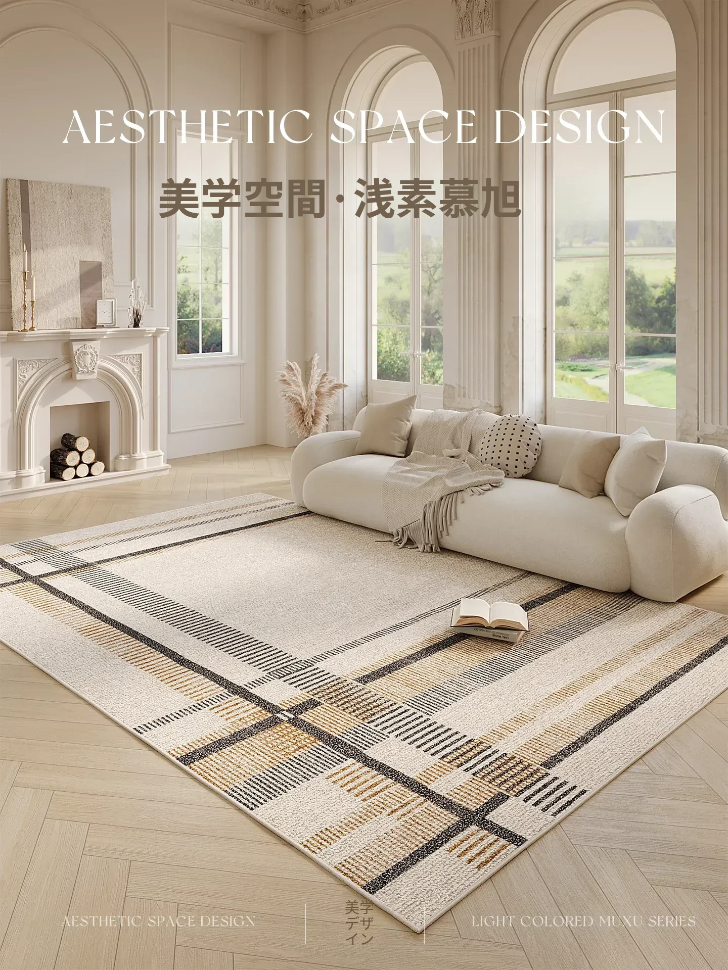 2025年新作!リビングにぴったりなインスタ風ミニマルでラグジュアリーなカーペット。おしゃれなソファやコーヒーテーブルと相性抜群!寝室にも最適なベッドサイドマットで、上質な空間を演出します。