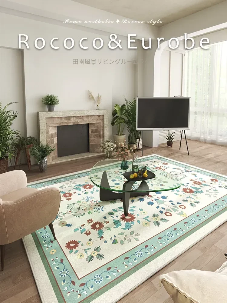 2025年新作!お手入れ簡単なリビングルームカーペット、フレンチスタイルのソファやテーブルにぴったり。高級感あふれるデザインで、寝室やベッドサイドにも最適な一枚。