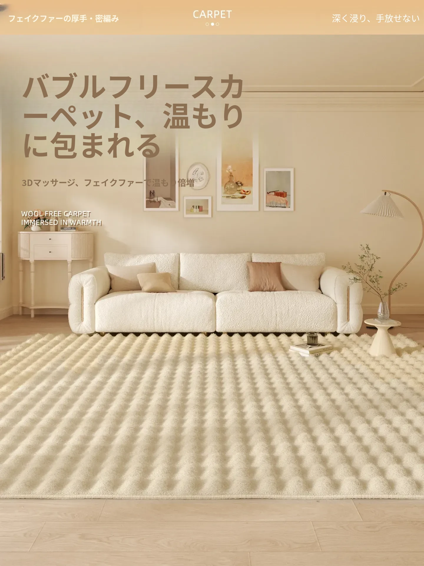 2025年新作!洗えるフレンチクリーム風カーペット、リビングルームやベッドサイドに最適。ソファやテーブルの下にぴったり!簡単に取り外して洗えるので、いつでも清潔に保てます。