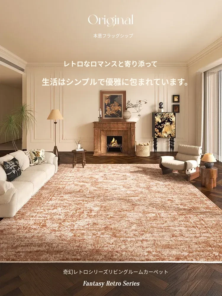 2025年新作!中古風の軽奢高級カーペット、洗浄不要でお手入れ簡単。リビングや寝室のベッドサイドにぴったりのスタイリッシュで快適なインテリアアイテム!