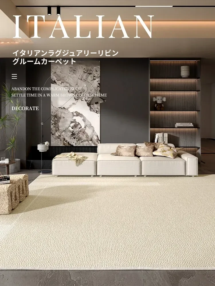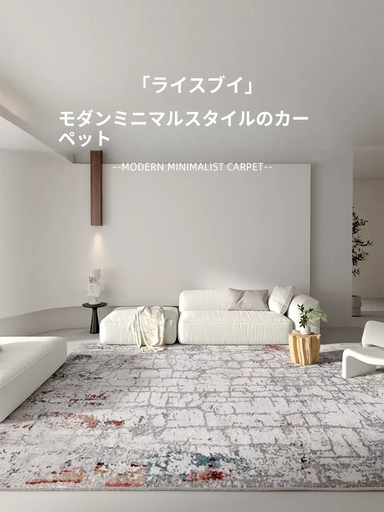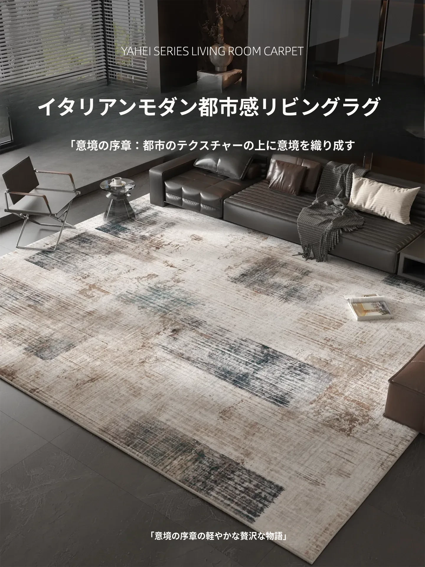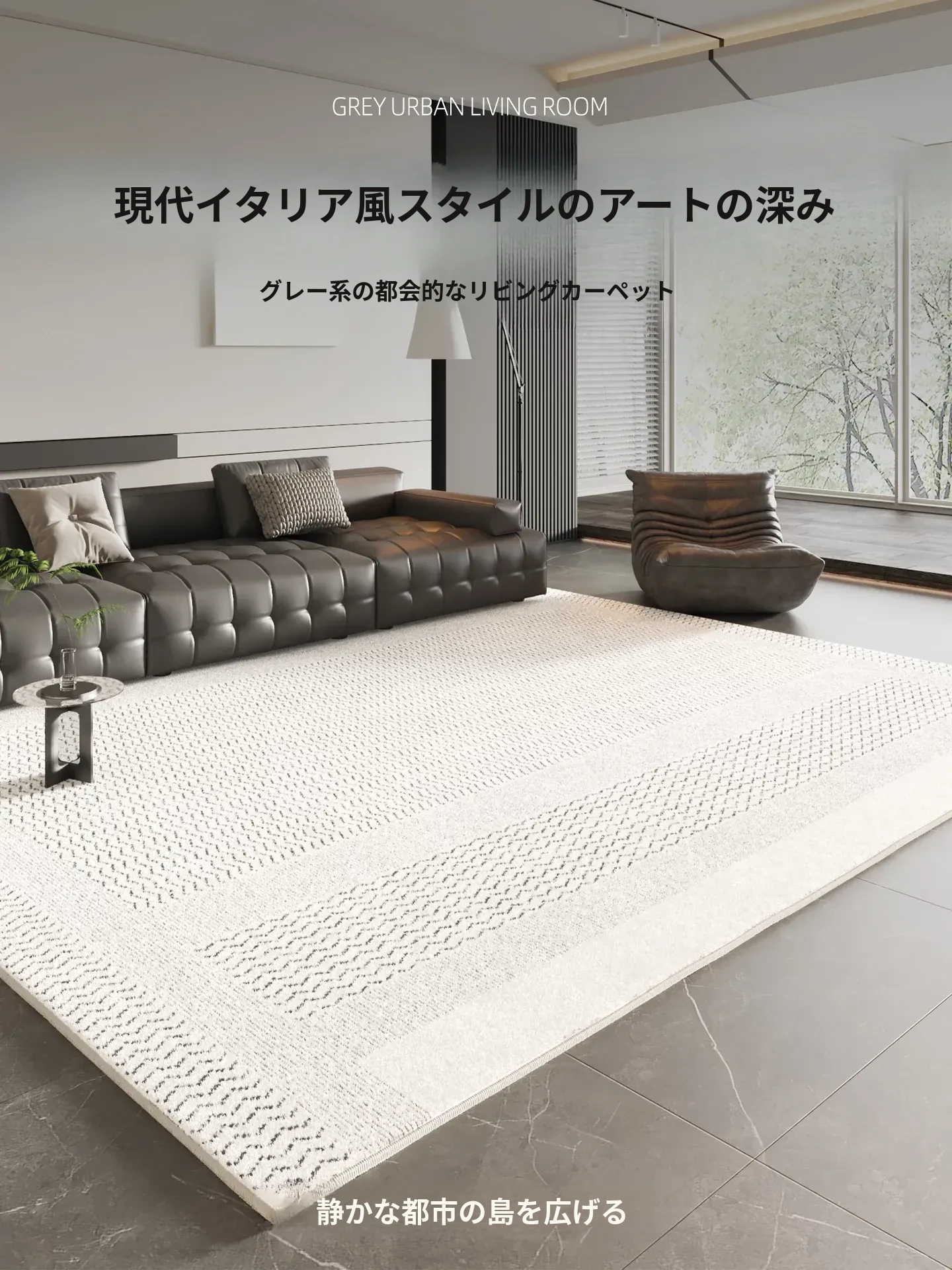 イタリアンミニマリズムのリビングルームラグ|2025年新作 軽やかな高級感のあるソファやテーブル用カーペット|洗わずに簡単お手入れ!