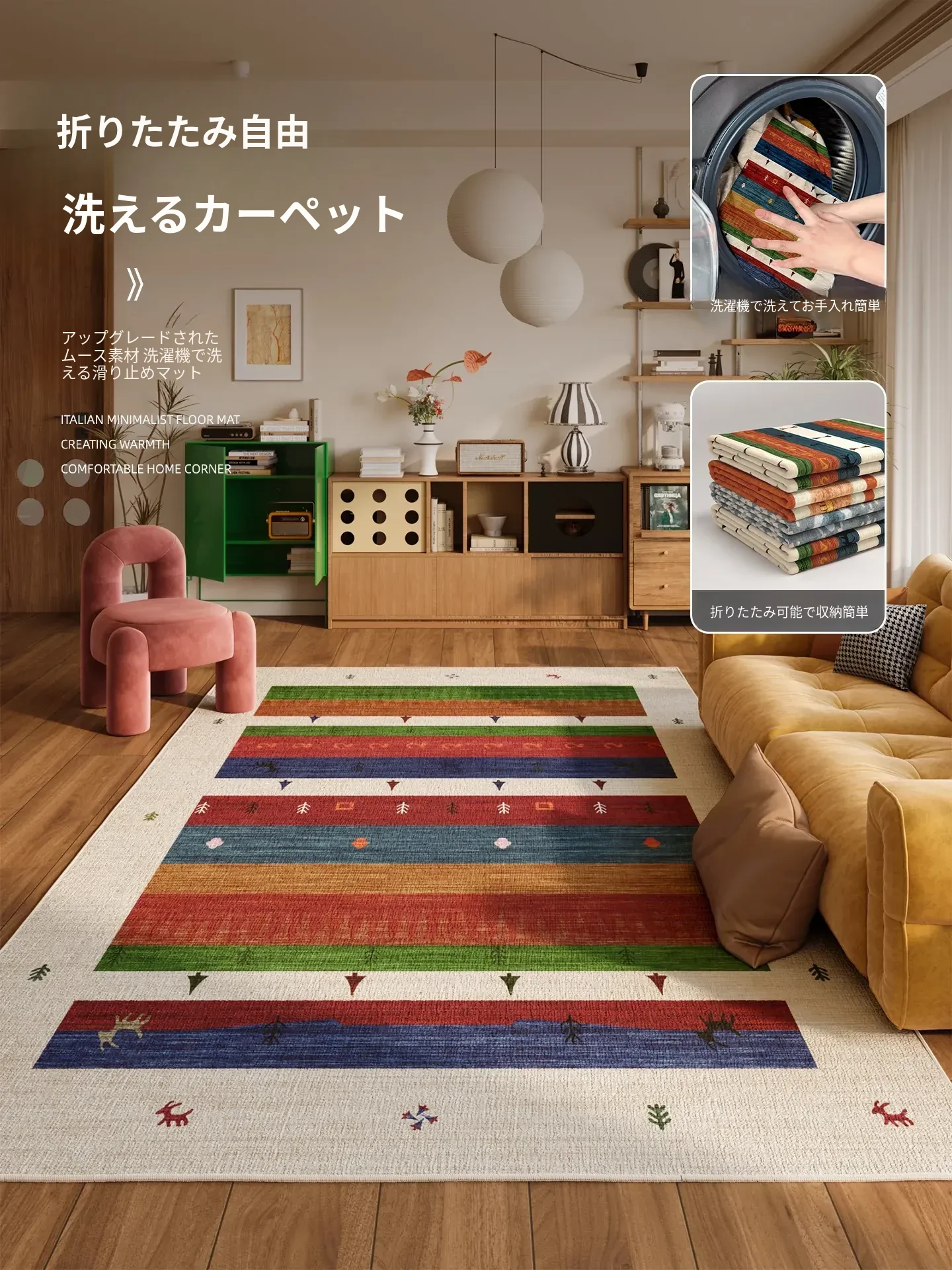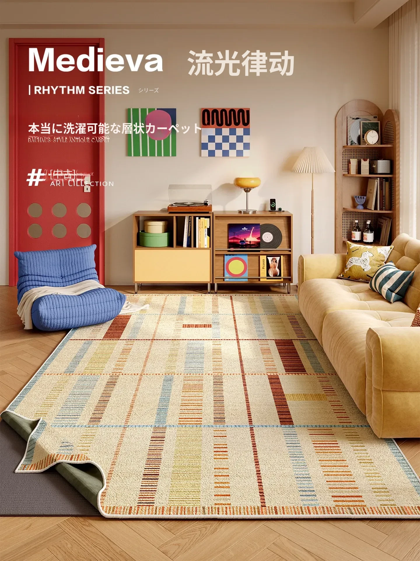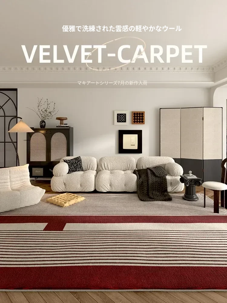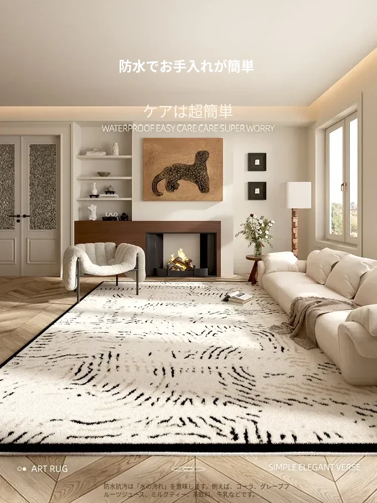 イタリアンミニマリズムのリビングルームラグ|2025年新作 軽やかな高級感のあるソファやテーブル用カーペット|洗わずに簡単お手入れ!