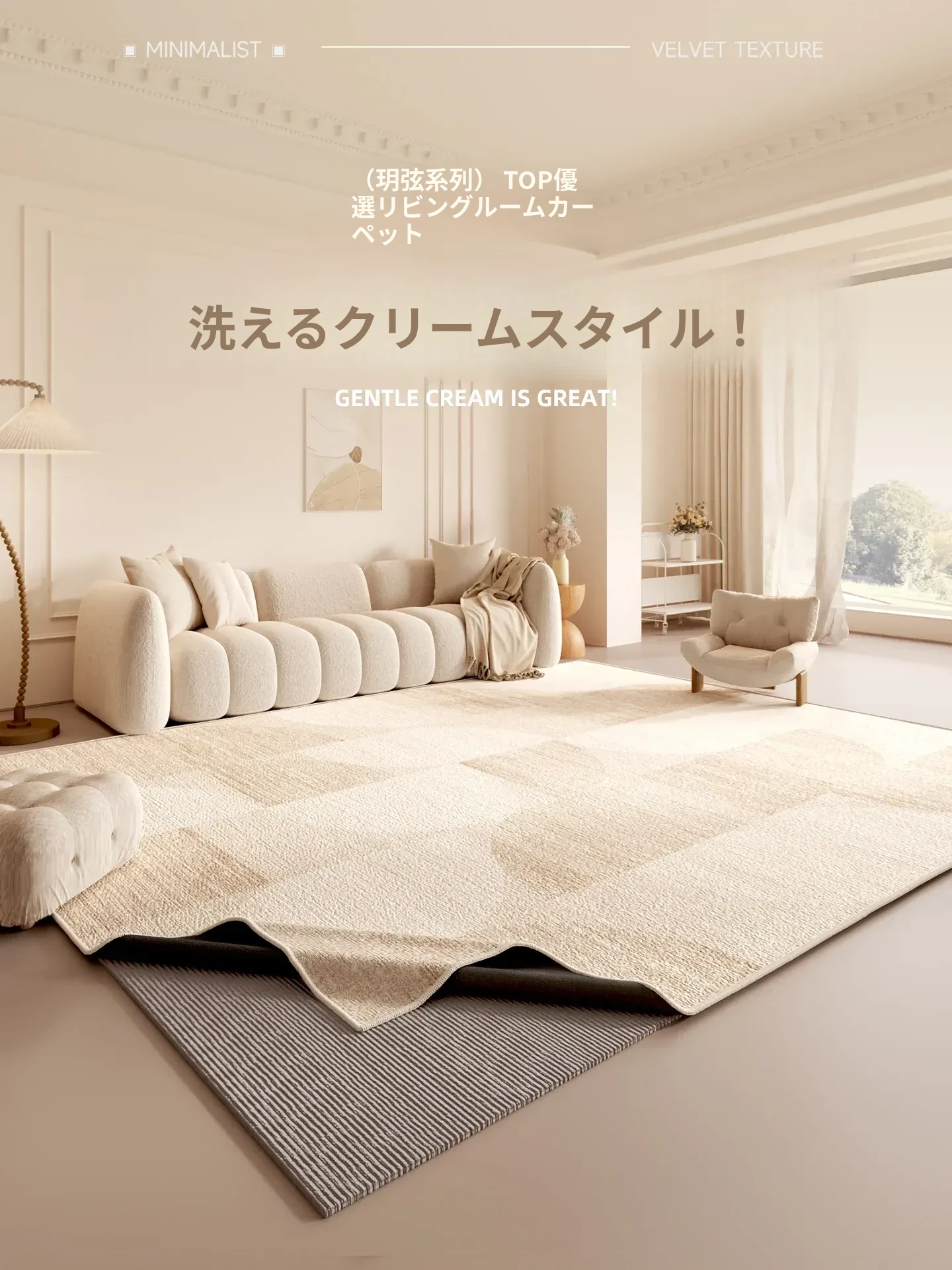 クリーム風カーペット|リビングルームに最適な高級感溢れる新作2025|防水・お手入れ簡単なソファマット|寝室にもぴったり!