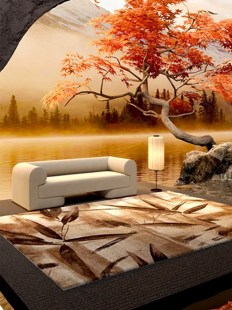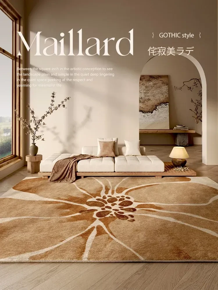 2025年新作!和モダンの侘寂スタイルリビングカーペット – ソファやテーブルに最適!防水・汚れに強く、お手入れ簡単な寝室ベッドサイドマット。おしゃれで快適な空間を演出します!