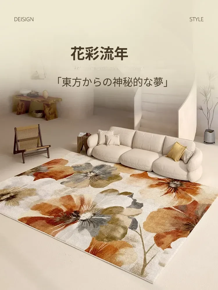 ヴィンテージ風リビングカーペット|ラグジュアリーな高級感|寝室ベッドサイドマット|洗わず拭くだけでお手入れ簡単|ソファやテーブルにぴったり!