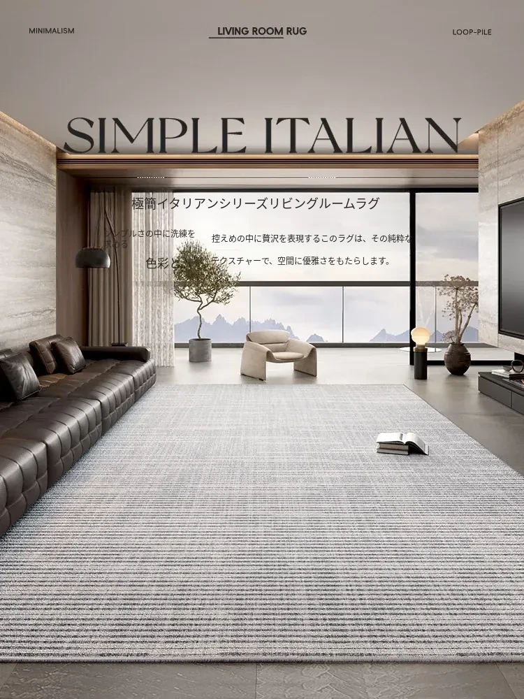 2025年新作!イタリアンミニマリズムのリビングルーム用カーペット、ベッドサイドにも最適。お手入れ簡単、拭くだけでOK!高級感あふれるソファマットで、あなたの空間をスタイリッシュに演出します。