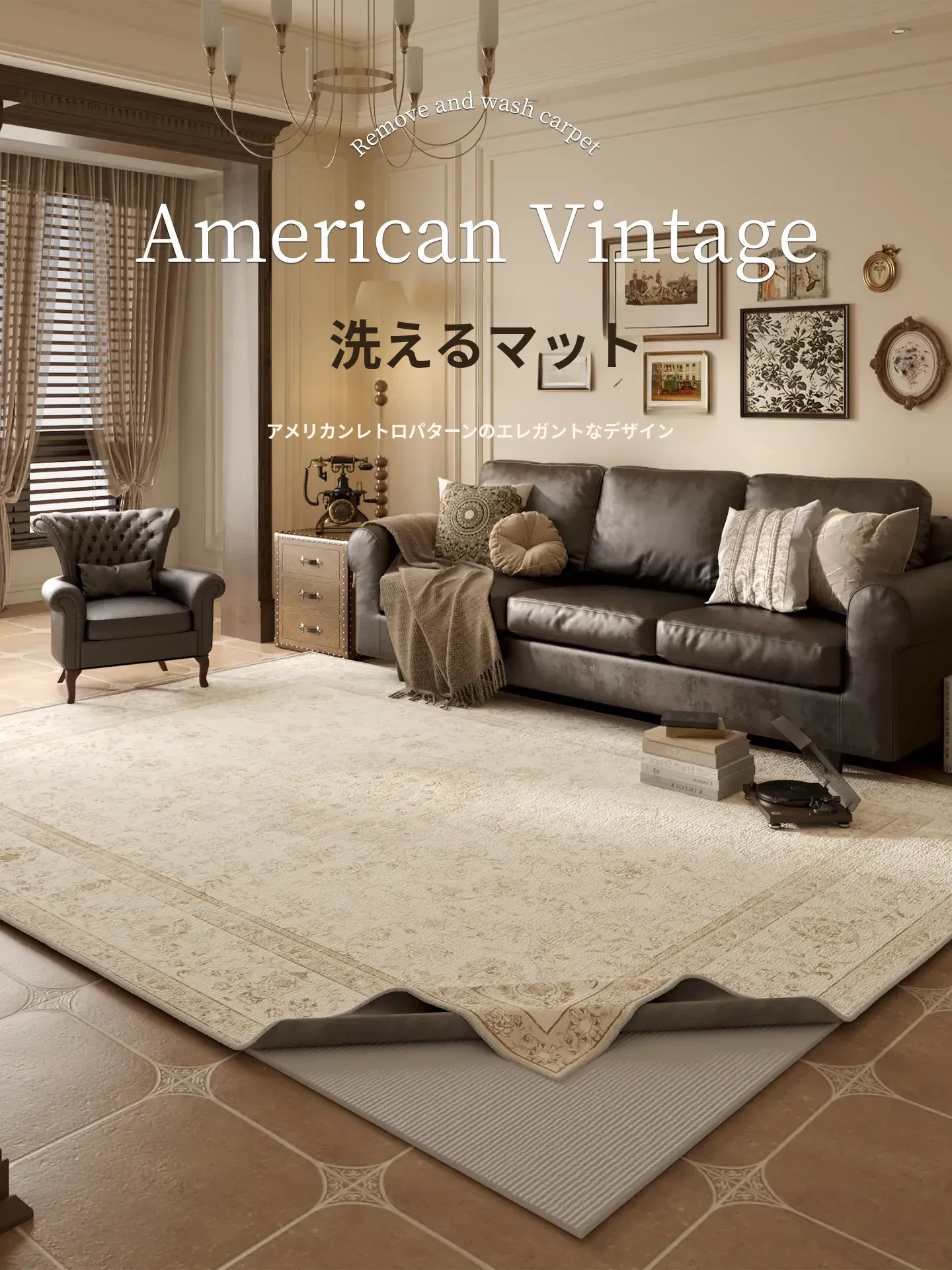 2025年新作!おしゃれで洗えるアメリカンヴィンテージスタイルのリビング用カーペット。ソファやテーブルの下にぴったり!寝室のベッドサイドにも最適。簡単に取り外して洗えるので、いつでも清潔に保てます。